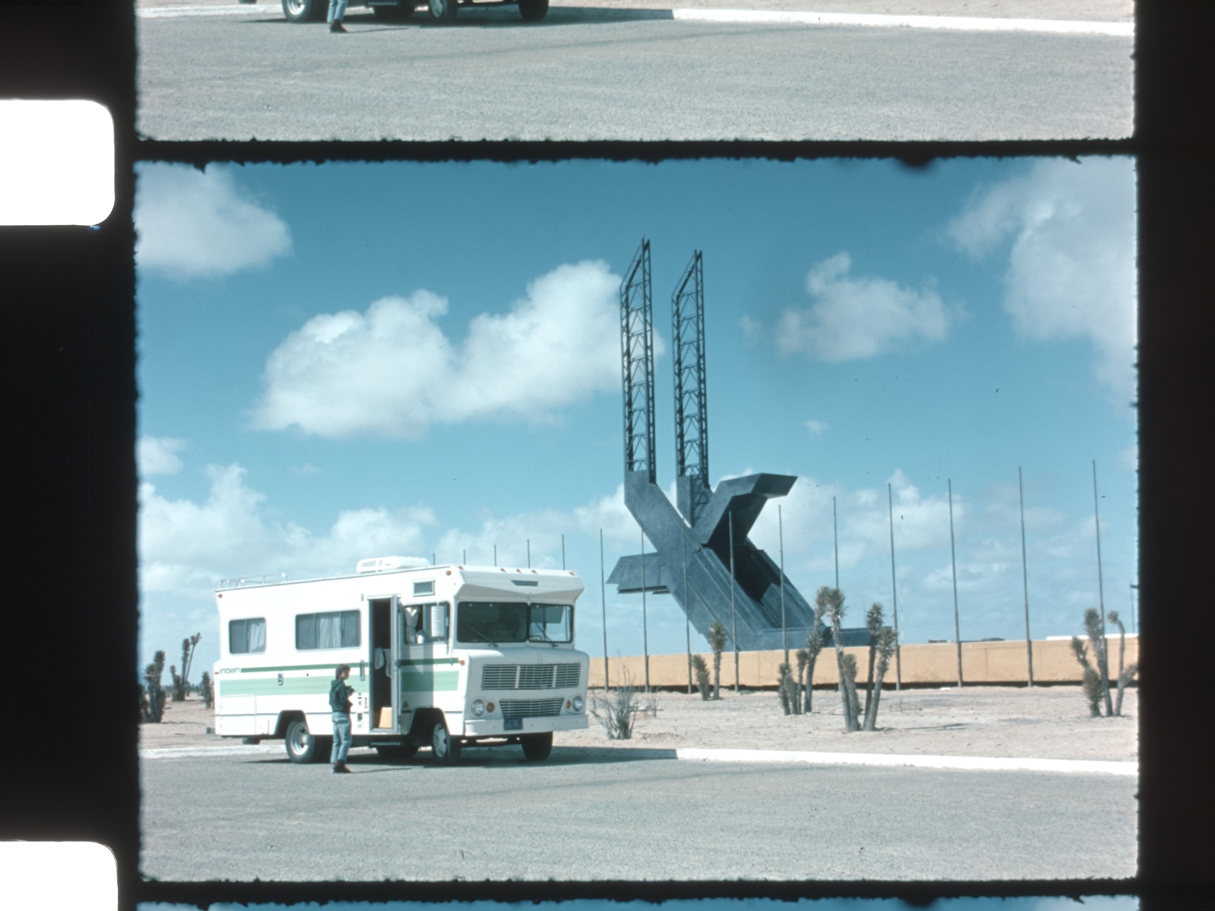 Baja California Sur, Mexico, 1970s, RV travel, Beach camping, Overland travel, Pacific coast, Monumento Conmemorativo Paralelo 28, Palm trees, Ocean views, Waves, Family travel, Kids playing on beach, Beach walking, Boating, Seagulls, Coastal life, Outdoor leisure, Vintage travel film, Color home movies, Analog film, Nostalgic footage