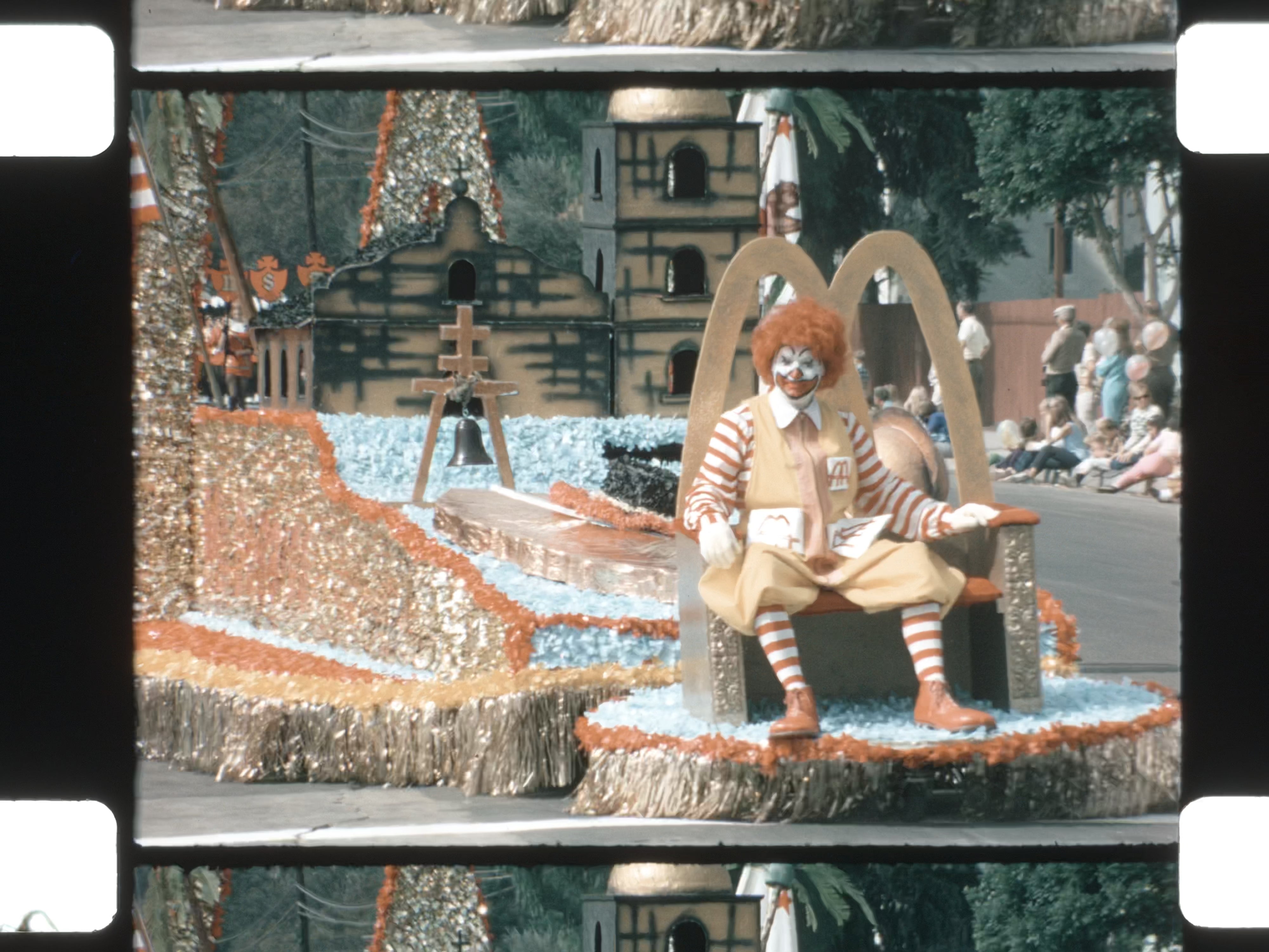 Southern California, Late 1960s, Early 1970s, Suburban America, American Dream, Middle-class life, 16mm film, Color home movies, Birthday party, Birthday cake, Candles, Opening presents, Backyard life, Neighbors, Driveway play, Swimming pool, Diving board, Reverse footage, Baby’s first birthday, Baby’s second birthday, Bicentennial parade, Parade floats, Marching band, Ronald McDonald, McDonald’s, Corporate mascots, Community celebration, Family milestones, Postwar prosperity, Vintage lifestyle, Americana, Analog film, Nostalgic footage