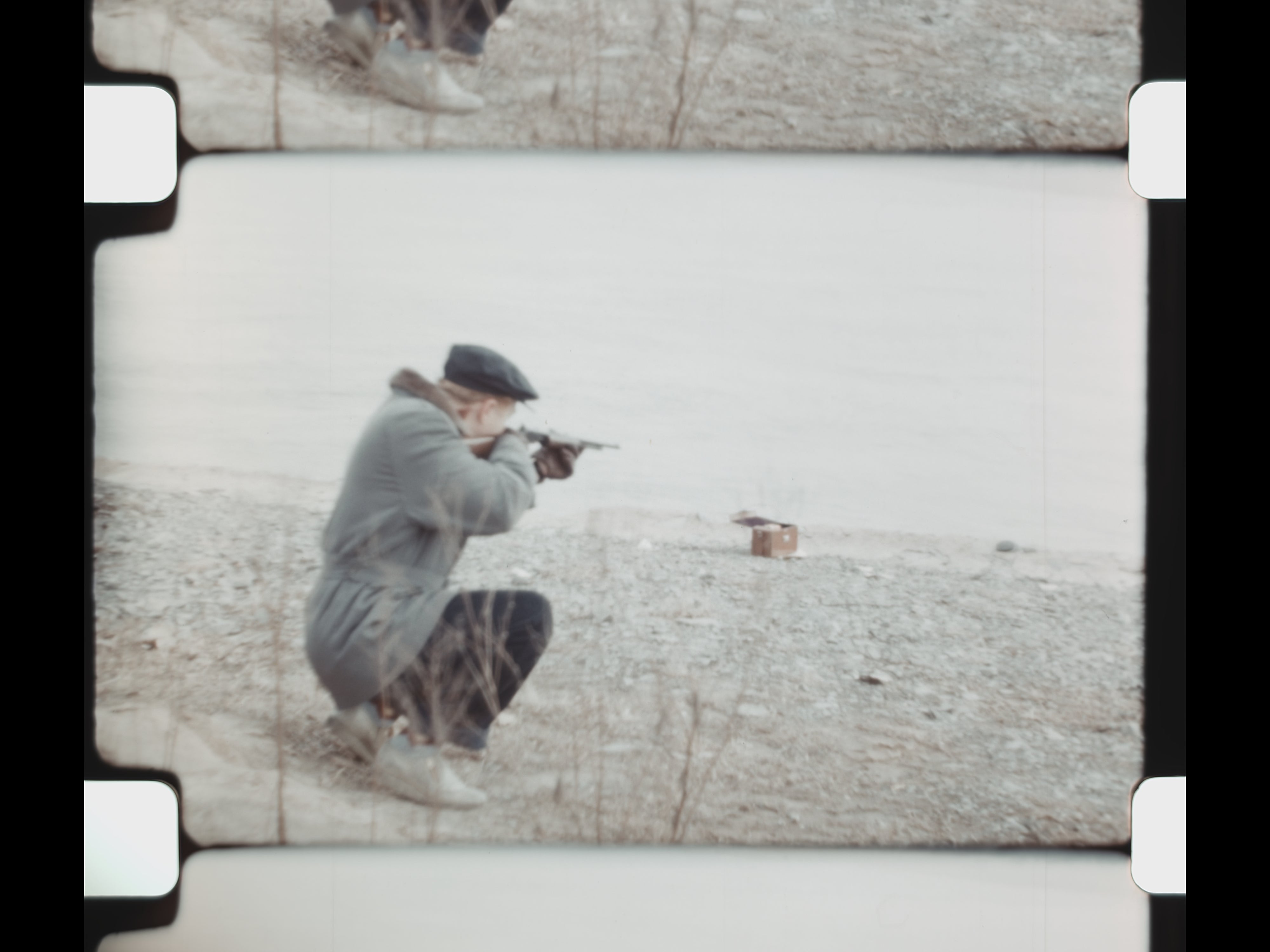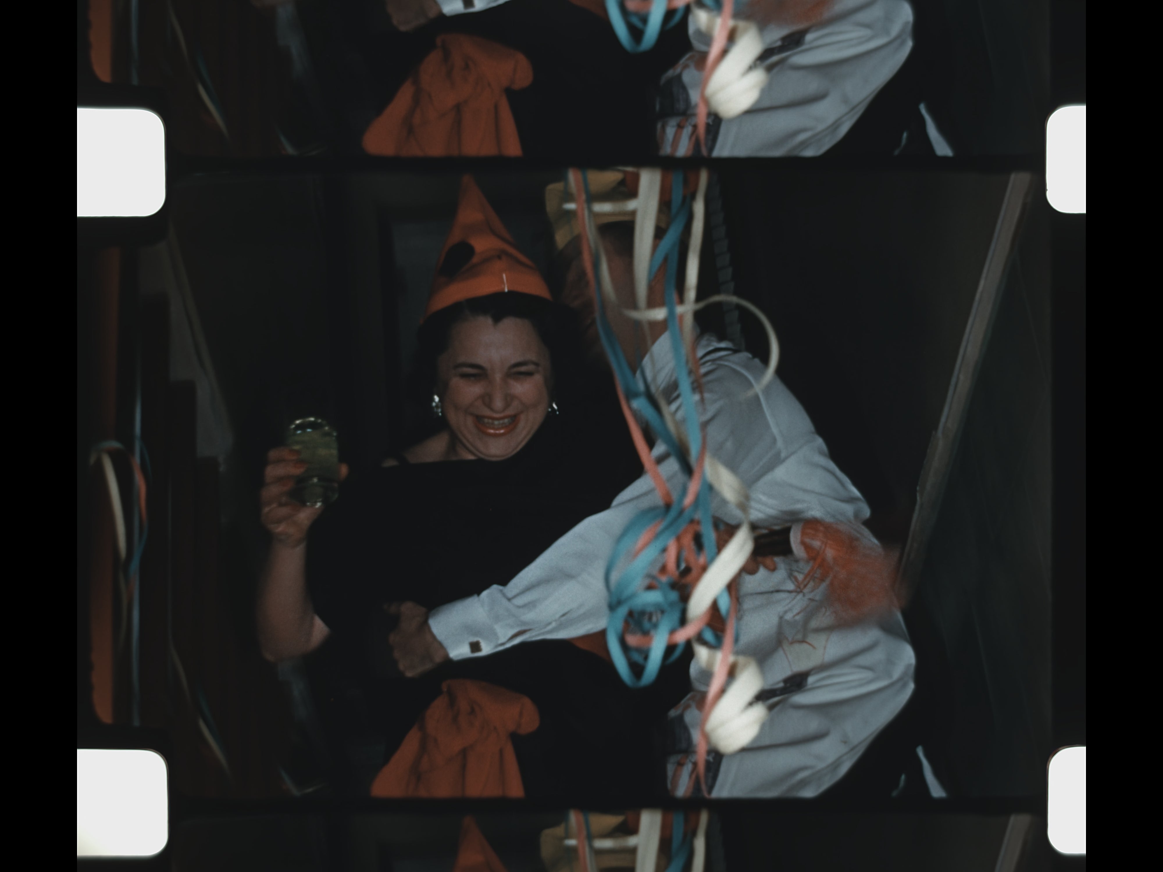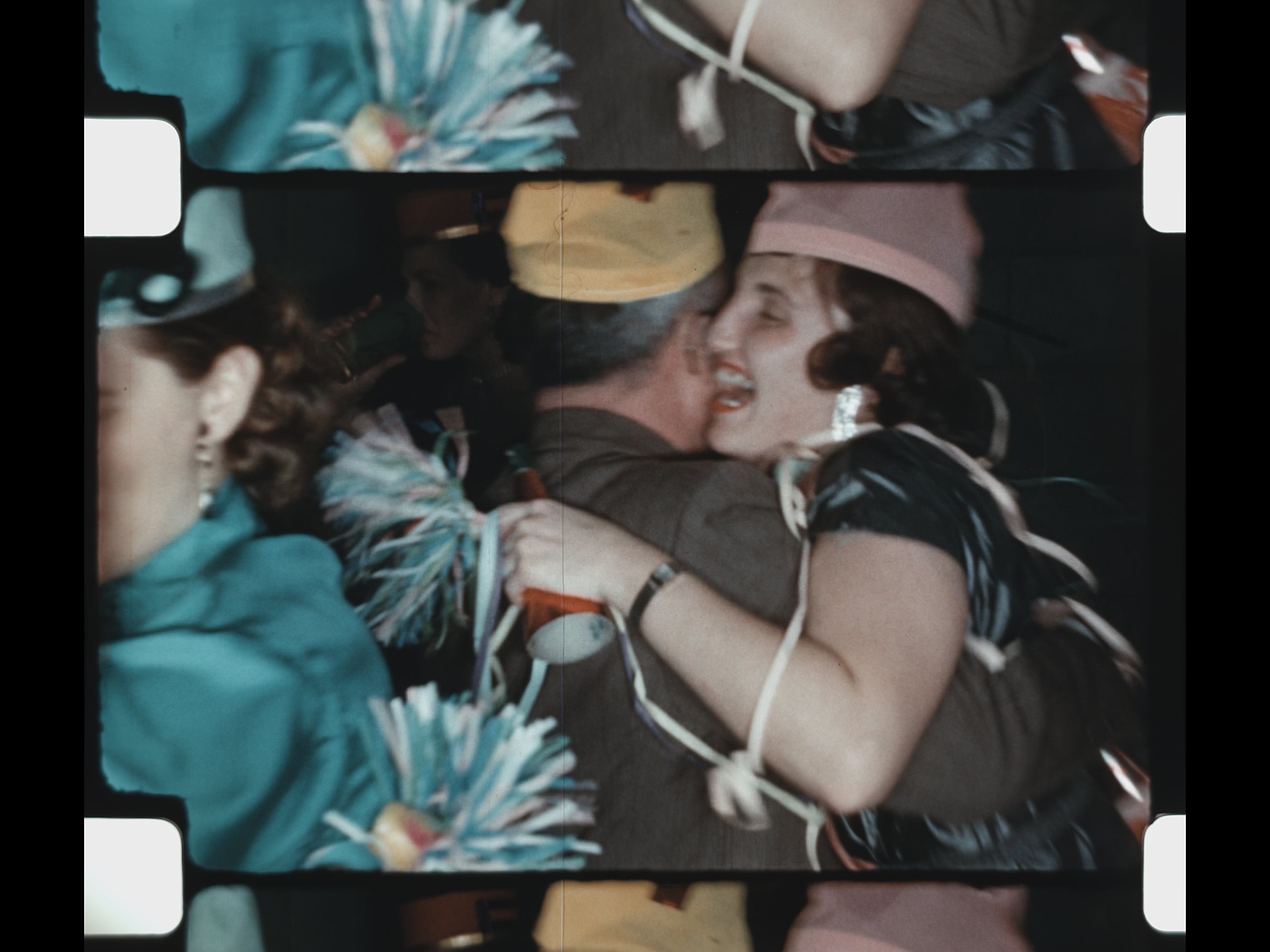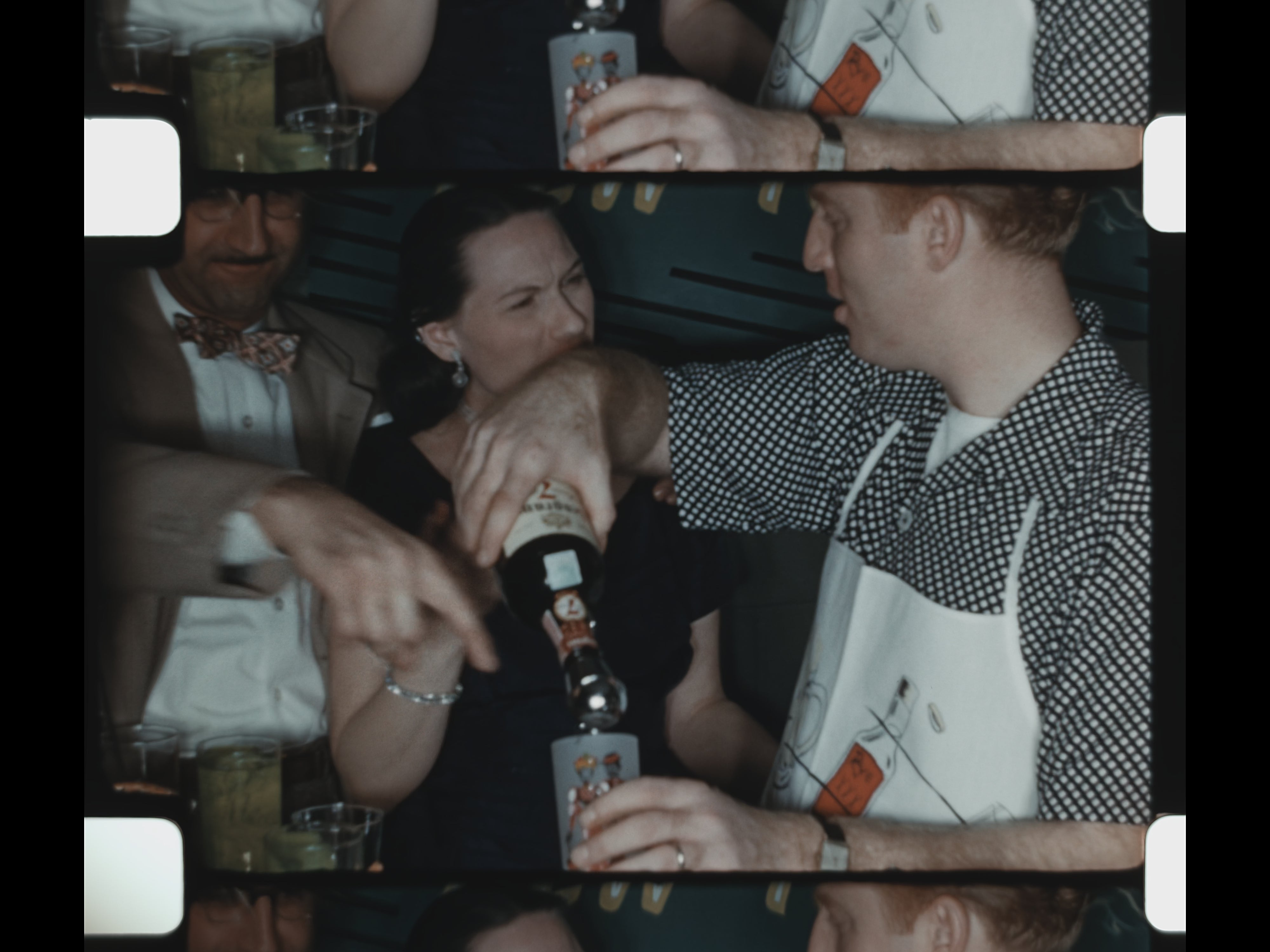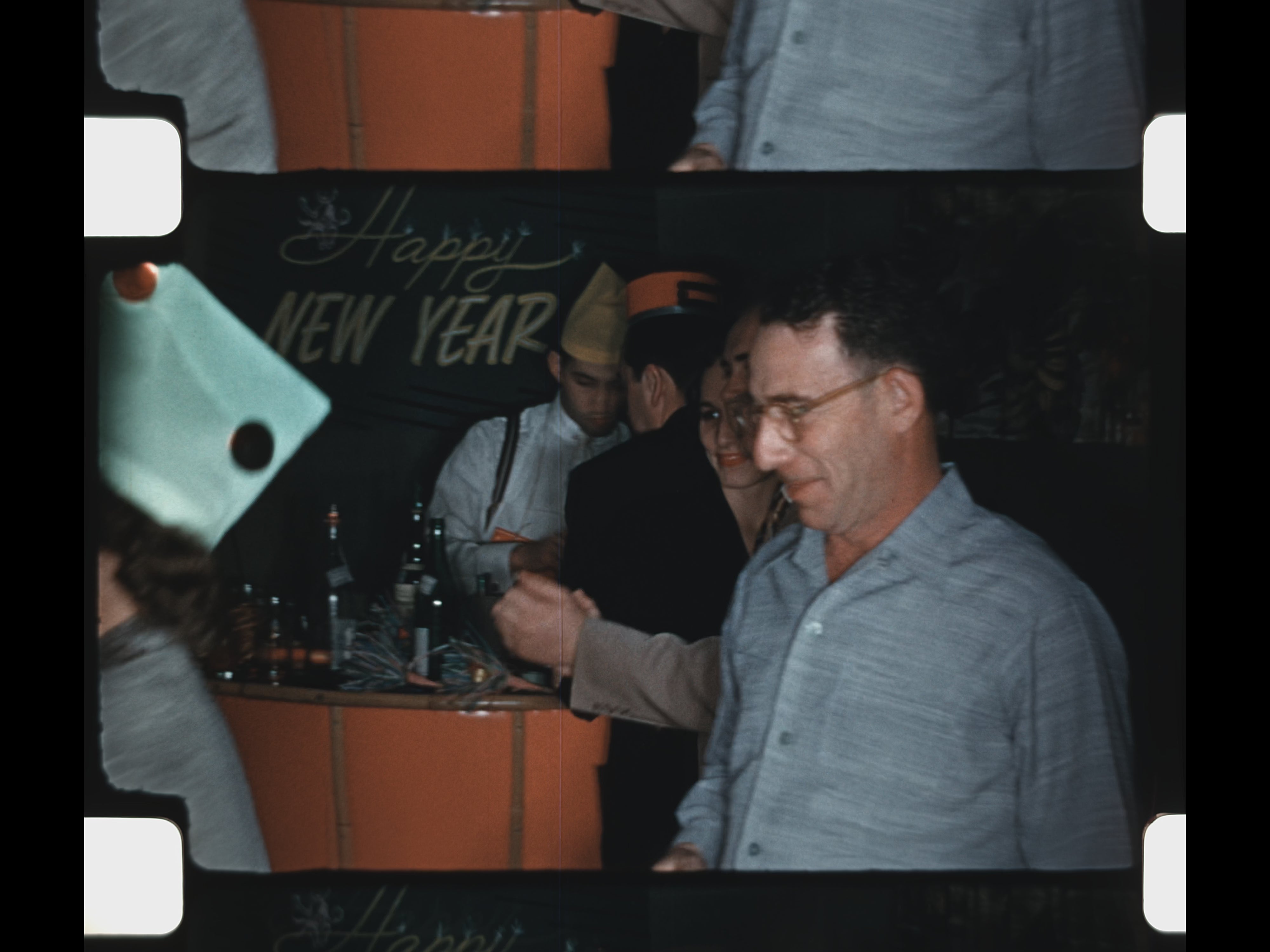 Interspersed with the celebrations are scenes of recreation and bonding: a man and boy shoot and reload a gun outdoors, followed by a basketball game where they shoot hoops together. The film concludes with a New Year’s Eve gathering, showing adults dancing, drinking, and celebrating together—closing the reel on a note of optimism and social connection.