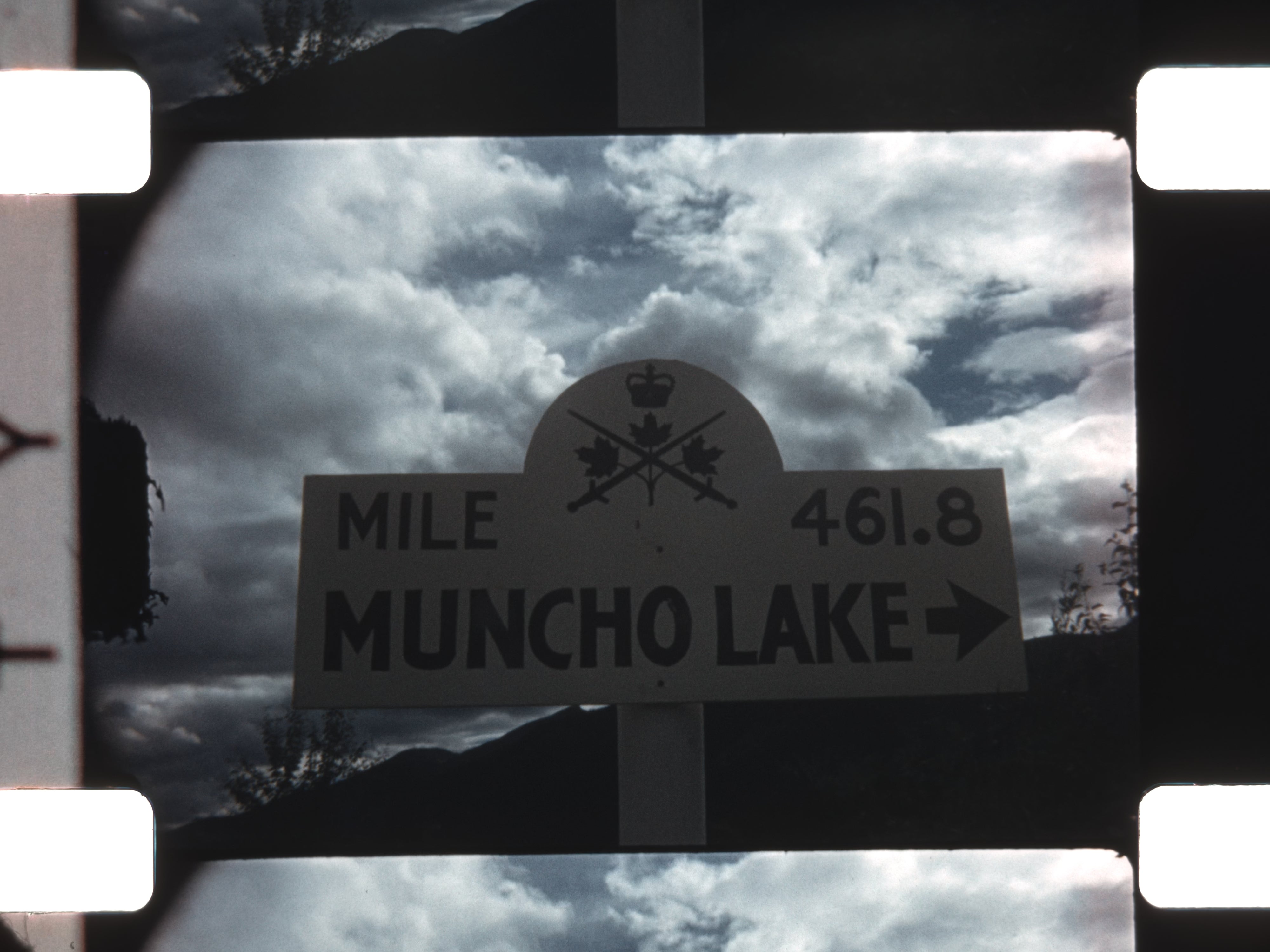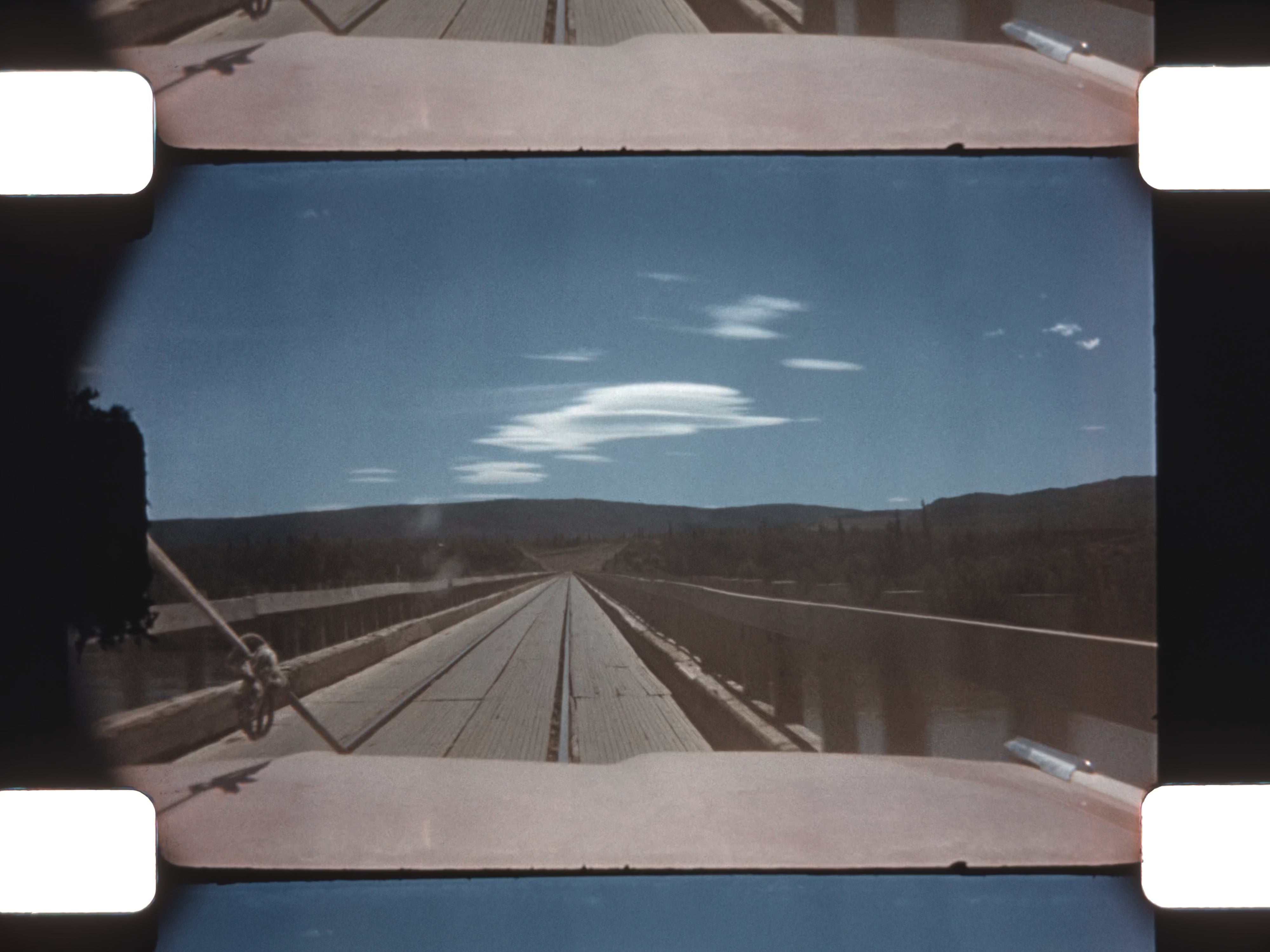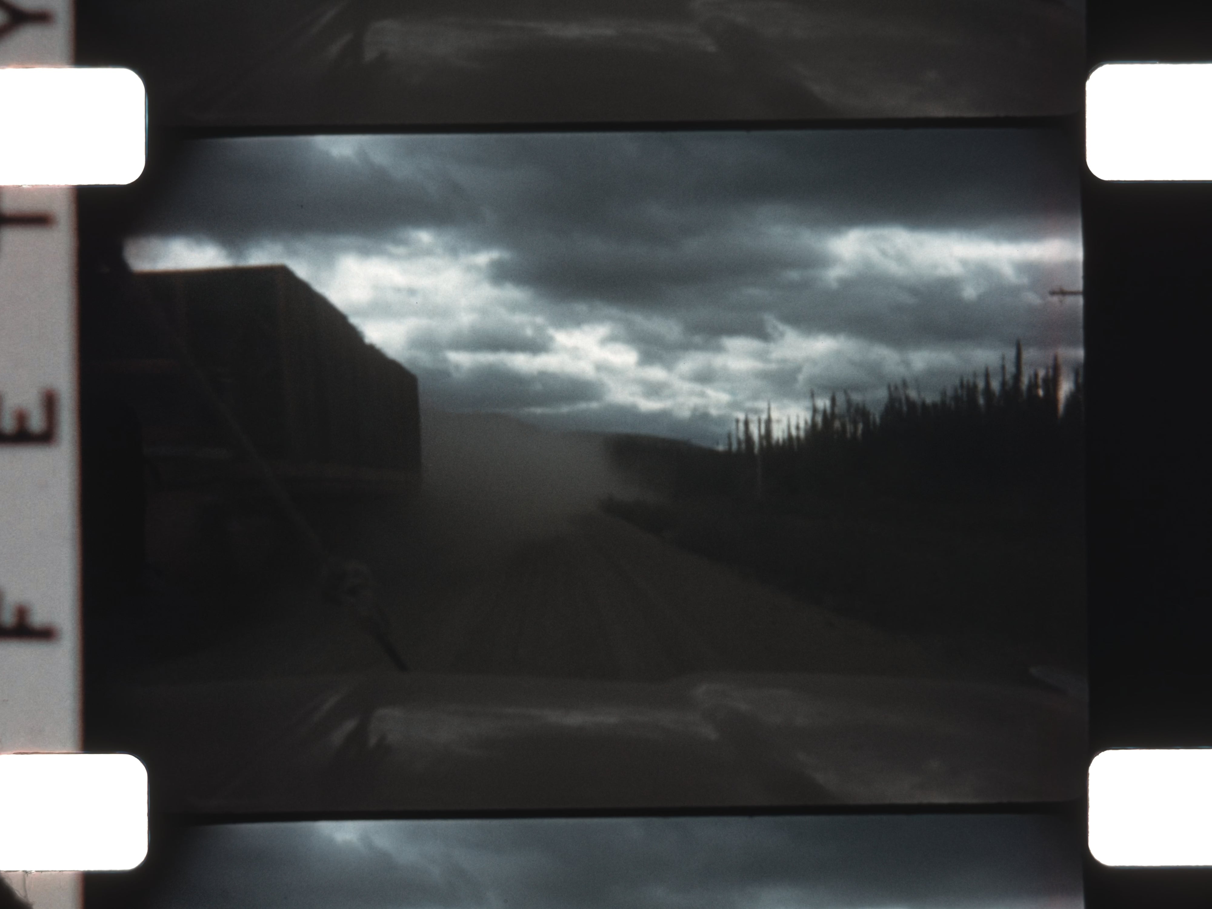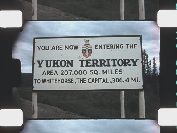 Yukon Territory, Canada, Northern Canada, 16mm film, Color home movies, Road travel, Mountain roads, Dirt roads, Muddy roads, Vehicle recovery, Camping, Camp stove, Coleman stove, Camp cooking, Sponge bath, Whitehorse Yukon, Whitehorse Star, Helicopter, Time-lapse, Moon over mountains, Forest fire smoke, Muncho Lake, Canadian Rockies, Mountains, Wildflowers, Songbirds, Feeding birds, Mountain bridge, One-way bridge, River, Campsite setup, Wilderness travel, Remote travel, Vintage travel footage, Analog film, Nostalgic footage