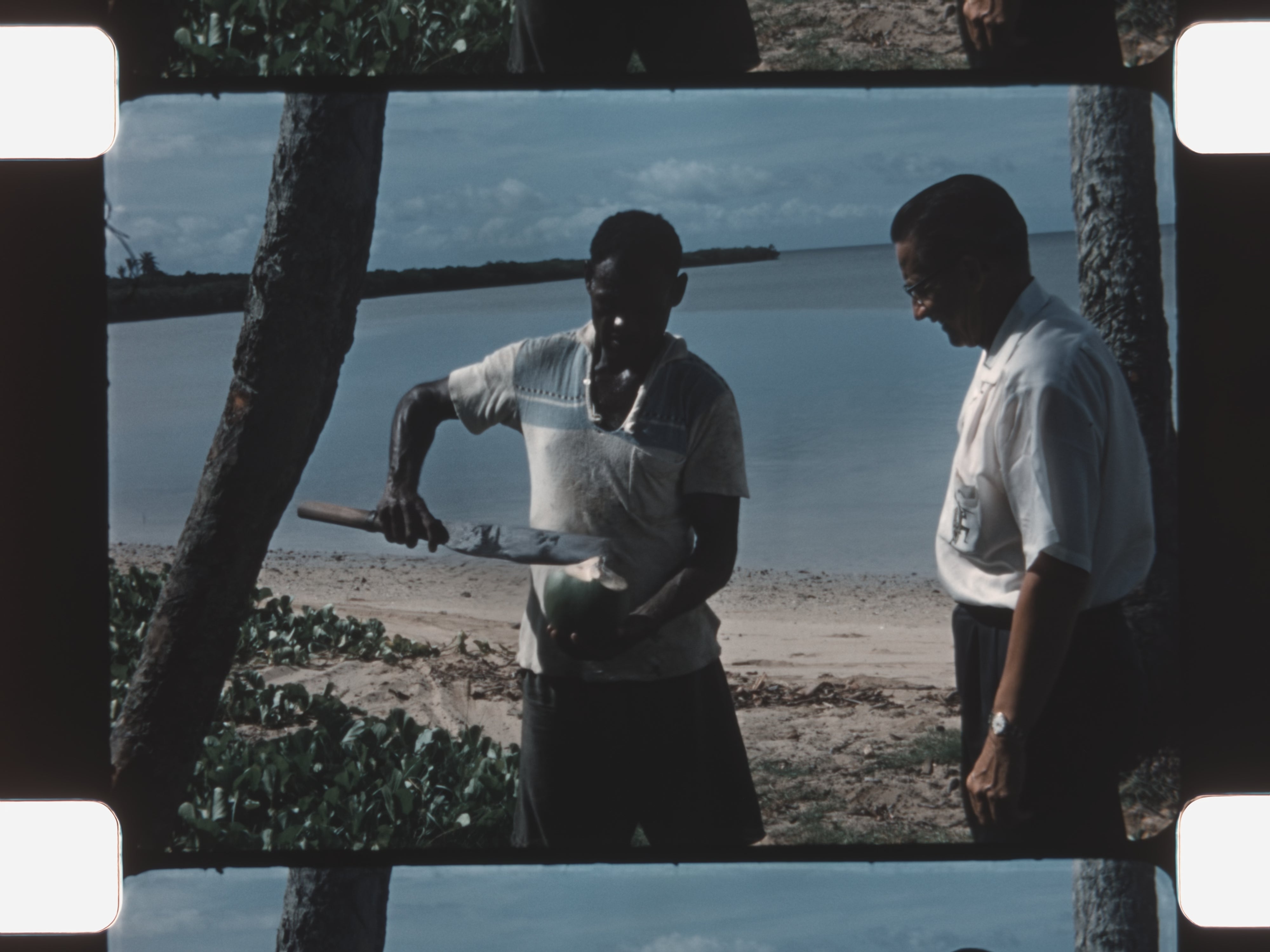 This home movie documents everyday life, agriculture, and village traditions in Fiji, capturing rural work, river activity, and handcrafted practices through quiet, observational footage. Shot on color 16mm film without synchronized sound, the reel offers a rare midcentury glimpse into community life across Fiji’s islands.