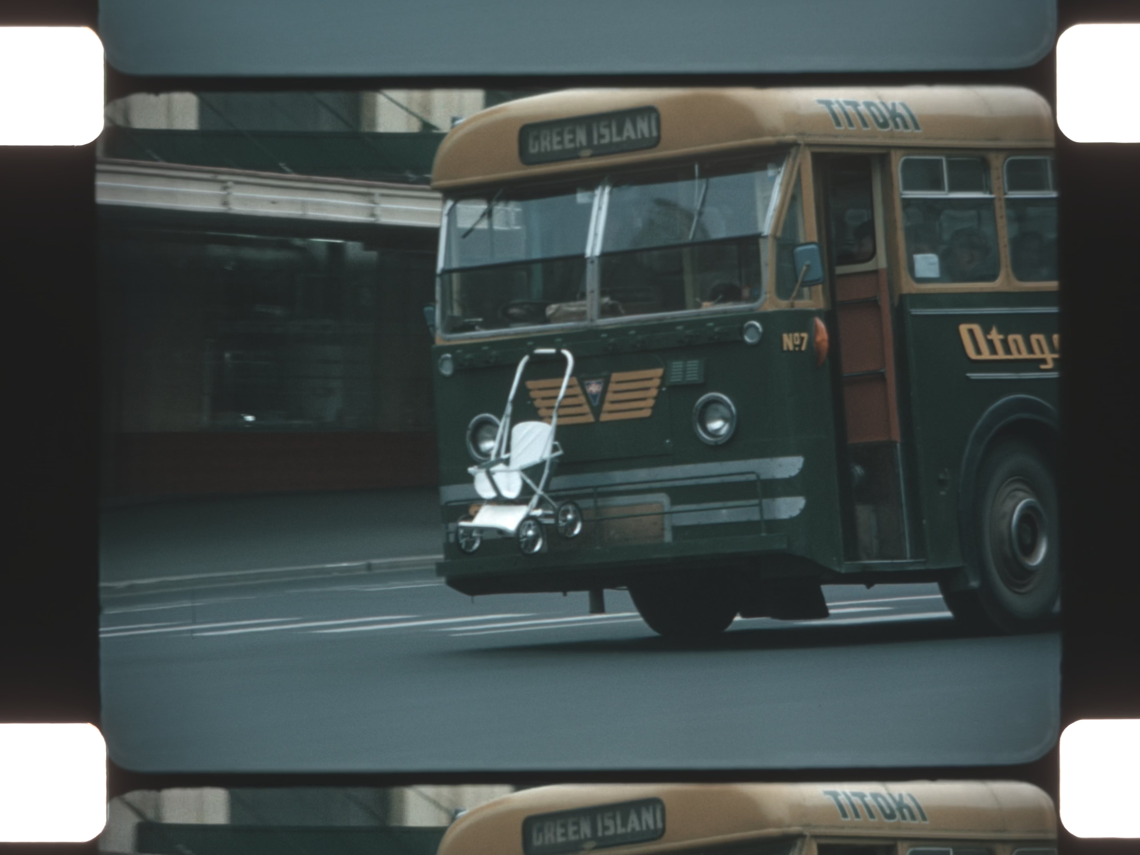 Australia, International travel, Home movies, 16mm film, Color home movies, Silent film, Coastal scenery, Ocean waves, Forest, Giant ferns, Waterfall, Wildlife, Ostriches, Sheep, Lamb feeding, Geese, Magpie, Kangaroo country, Agriculture, Logging machinery, Crop dusting, Fishing cages, Lobsters, Seagulls, Qantas, Air travel, Sailboats, Rowboat, Kayaking, City buses, Baby carriages, Urban life, Horse carriage, Beach, Wind warning sign, Mountain road, River crossing, Landscaping flowers, Red Band Beer truck, New Zealand references, Midcentury travel, Americana abroad, Analog film, Nostalgic footage, Archival travel footage