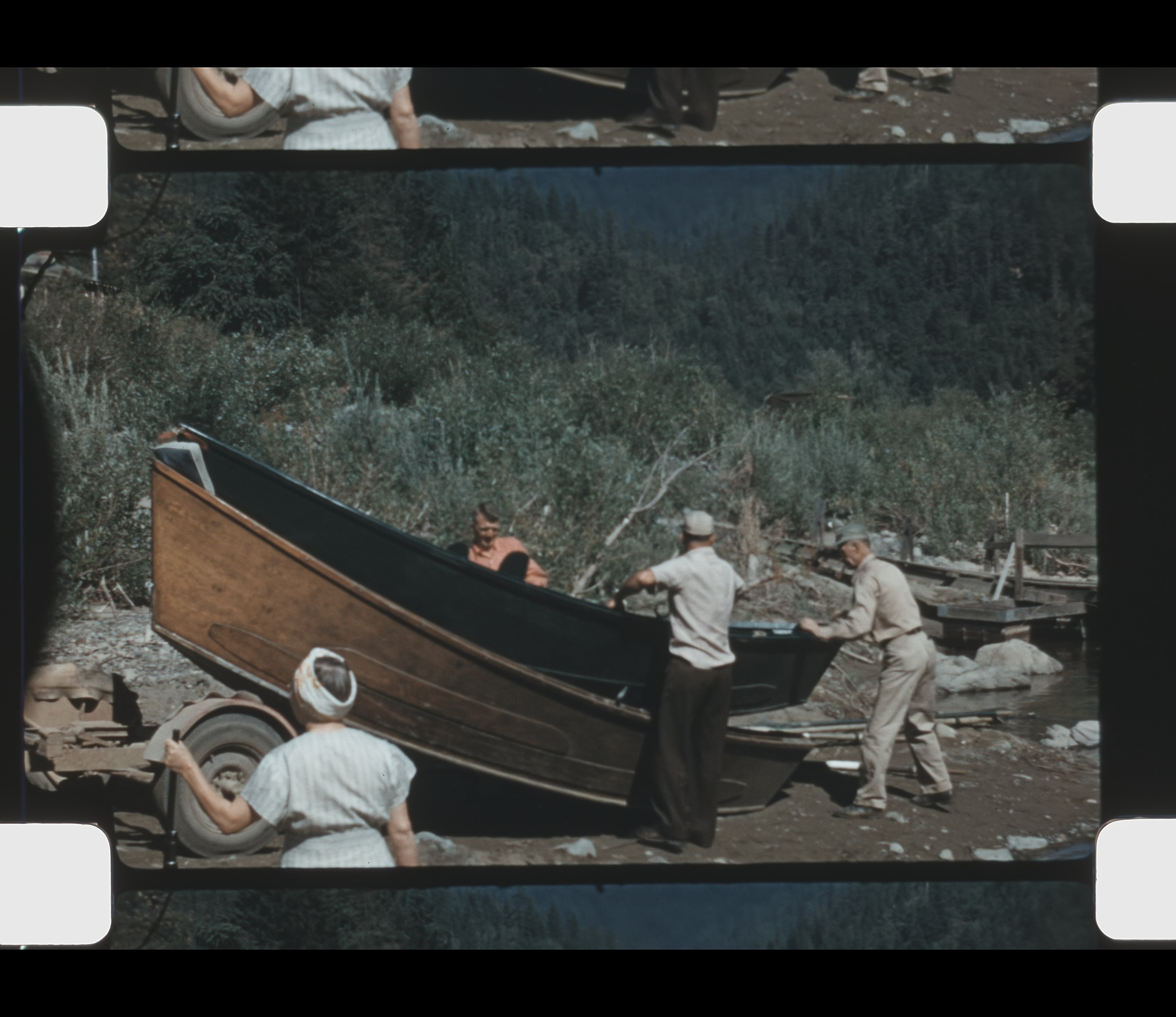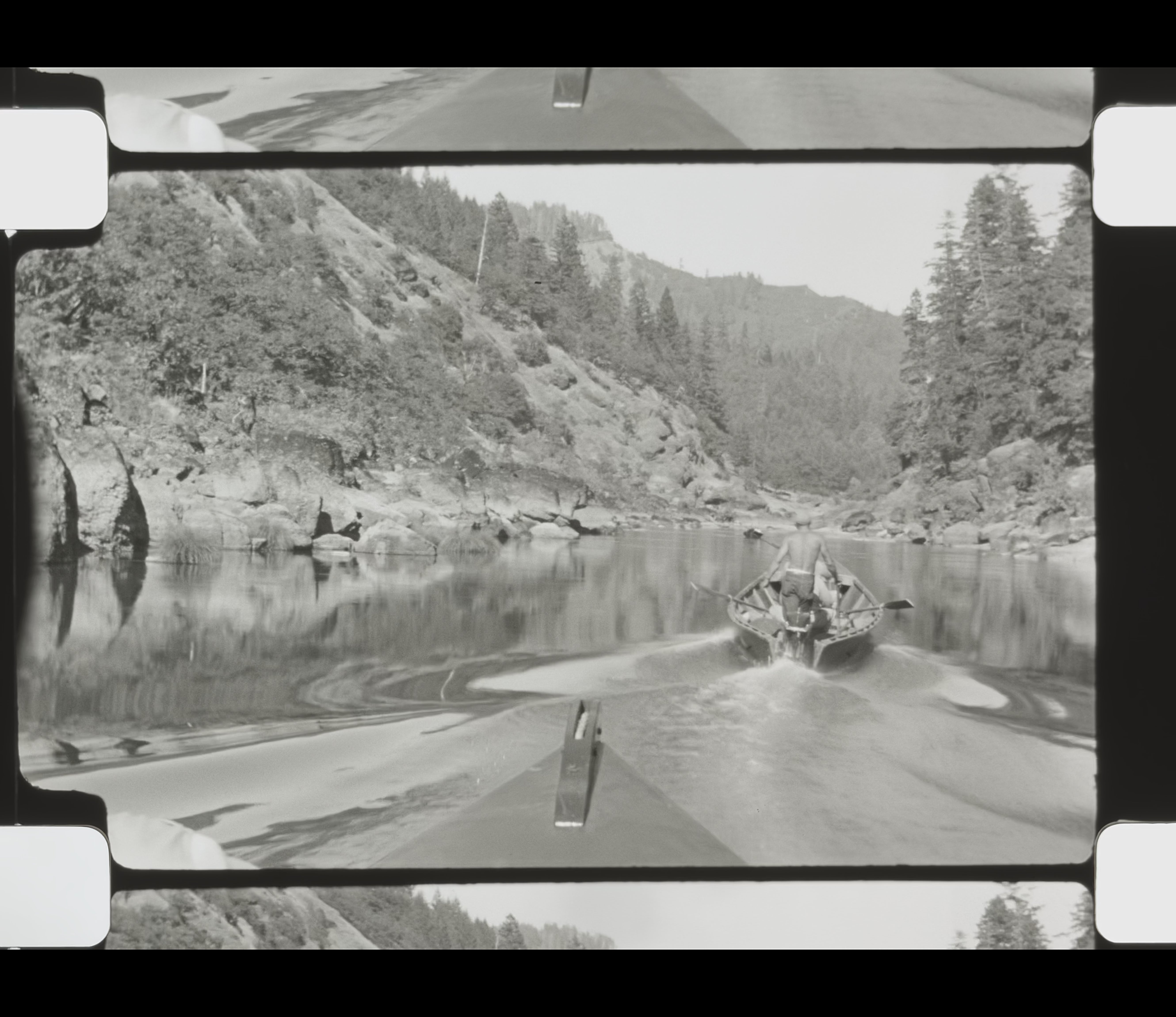 Intercut throughout are black-and-white shots of boating and fishing on the Rogue River, providing a historical contrast to the color footage and reinforcing the sense of continuity between generations of river travelers. Together, these scenes form a vivid record of midcentury outdoor recreation in Oregon—preserving both the adventure of the river and the shared experience of time spent in the wilderness.