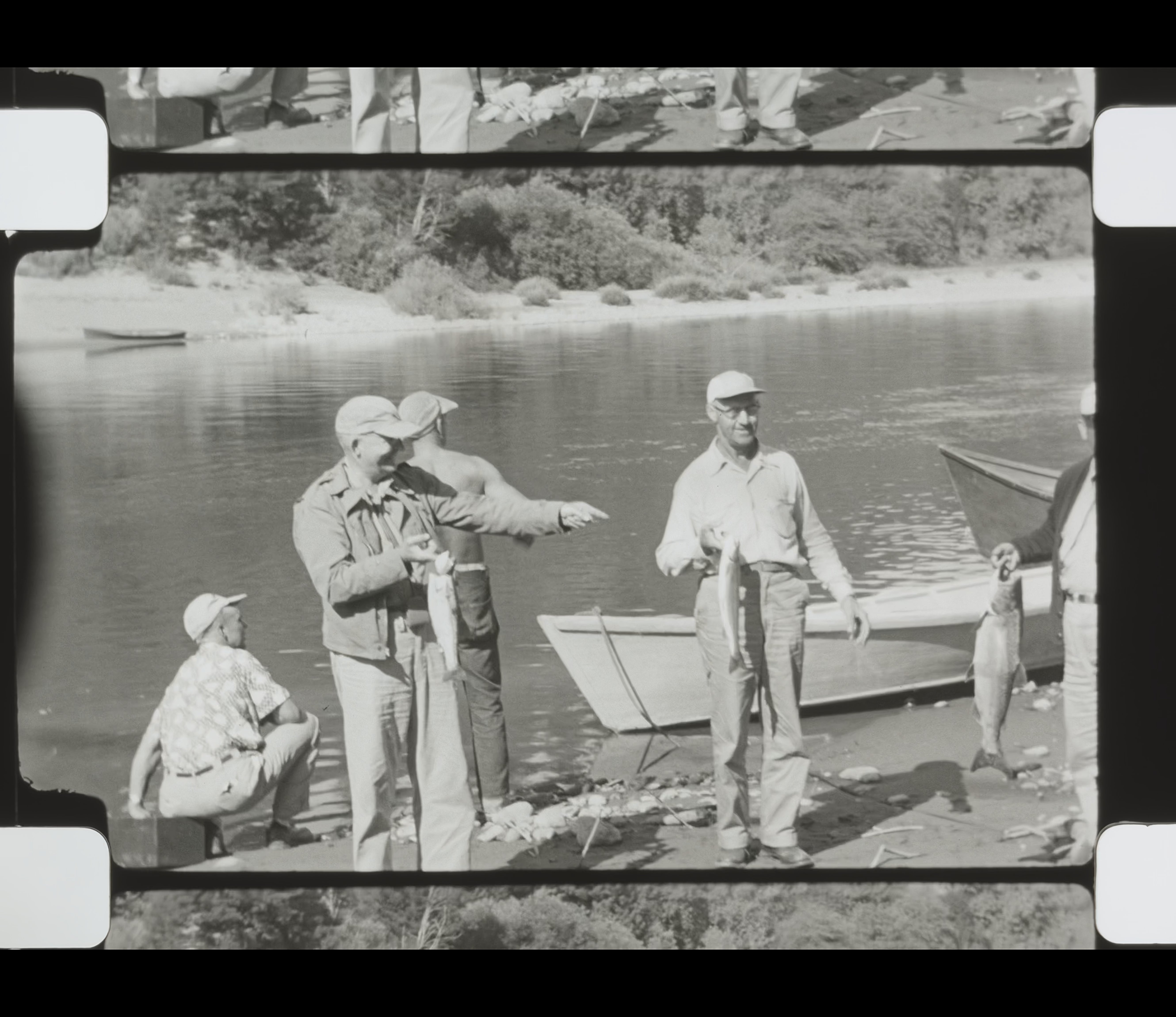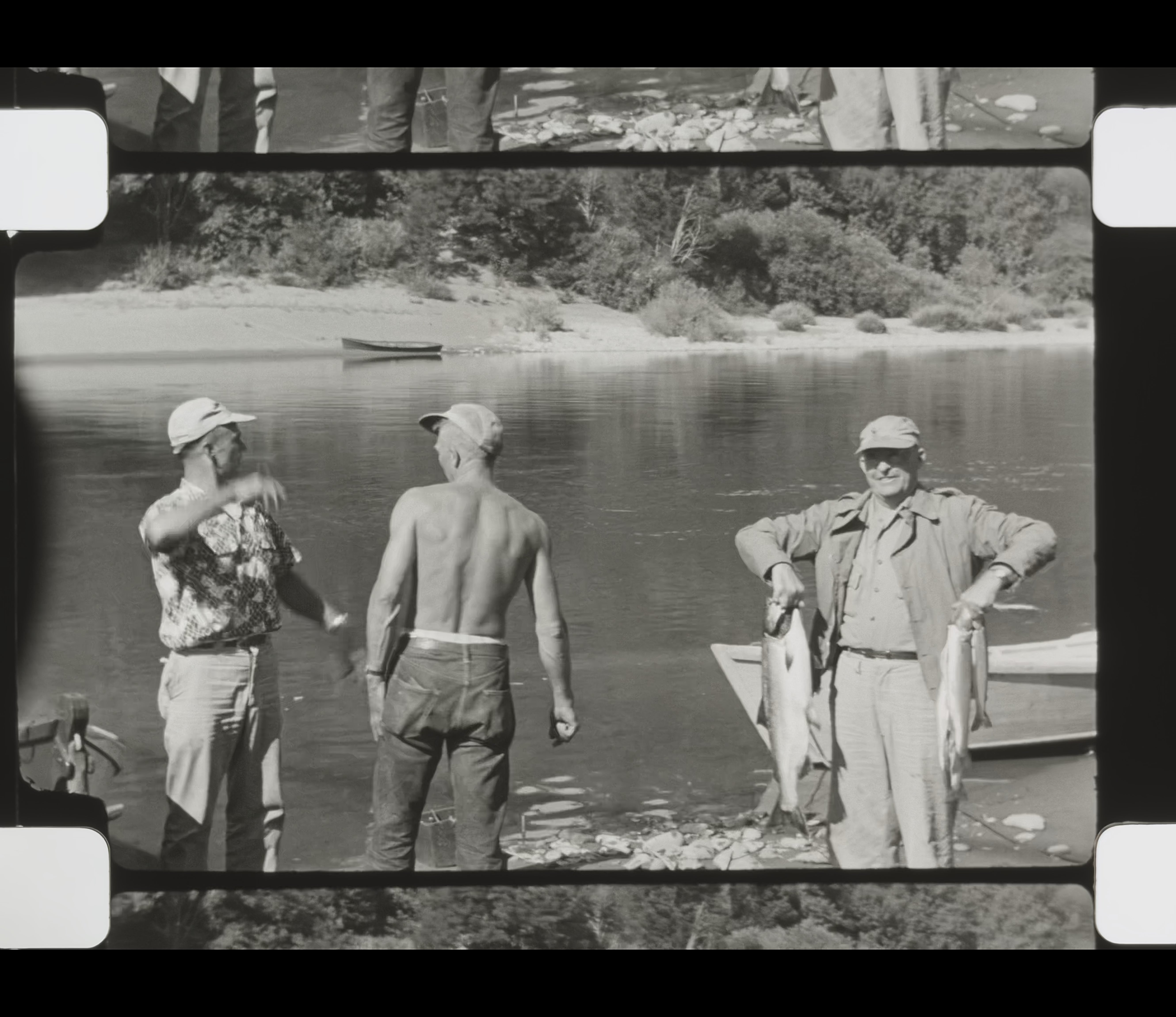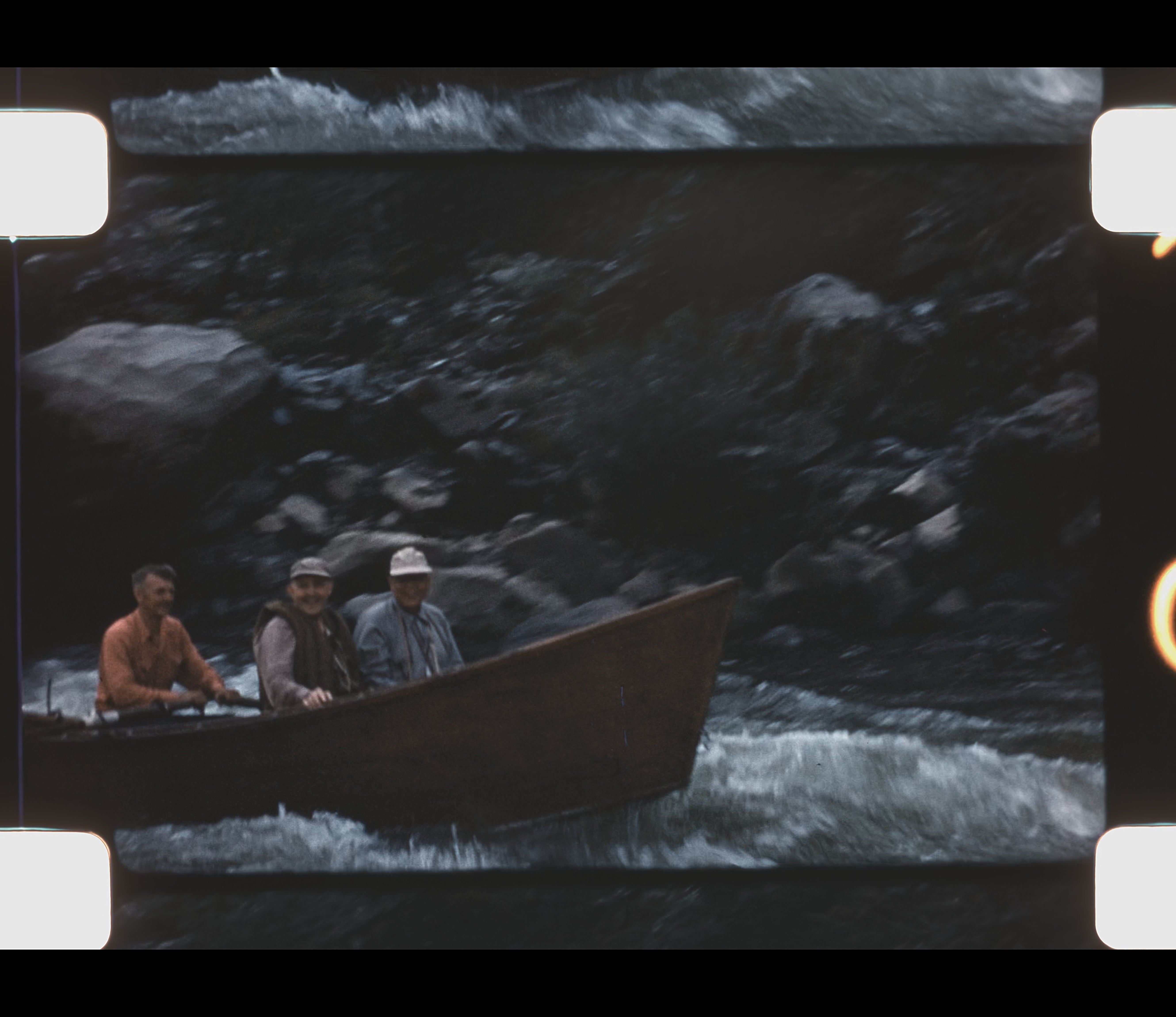 This engaging home movie documents a men’s fishing trip along Oregon’s Rogue River, capturing both the excitement of river travel and the quiet camaraderie of an outdoor adventure in the Pacific Northwest. Shot primarily on 16mm film, the reel blends color footage with earlier black-and-white scenes, suggesting material gathered across multiple outings or film stocks.