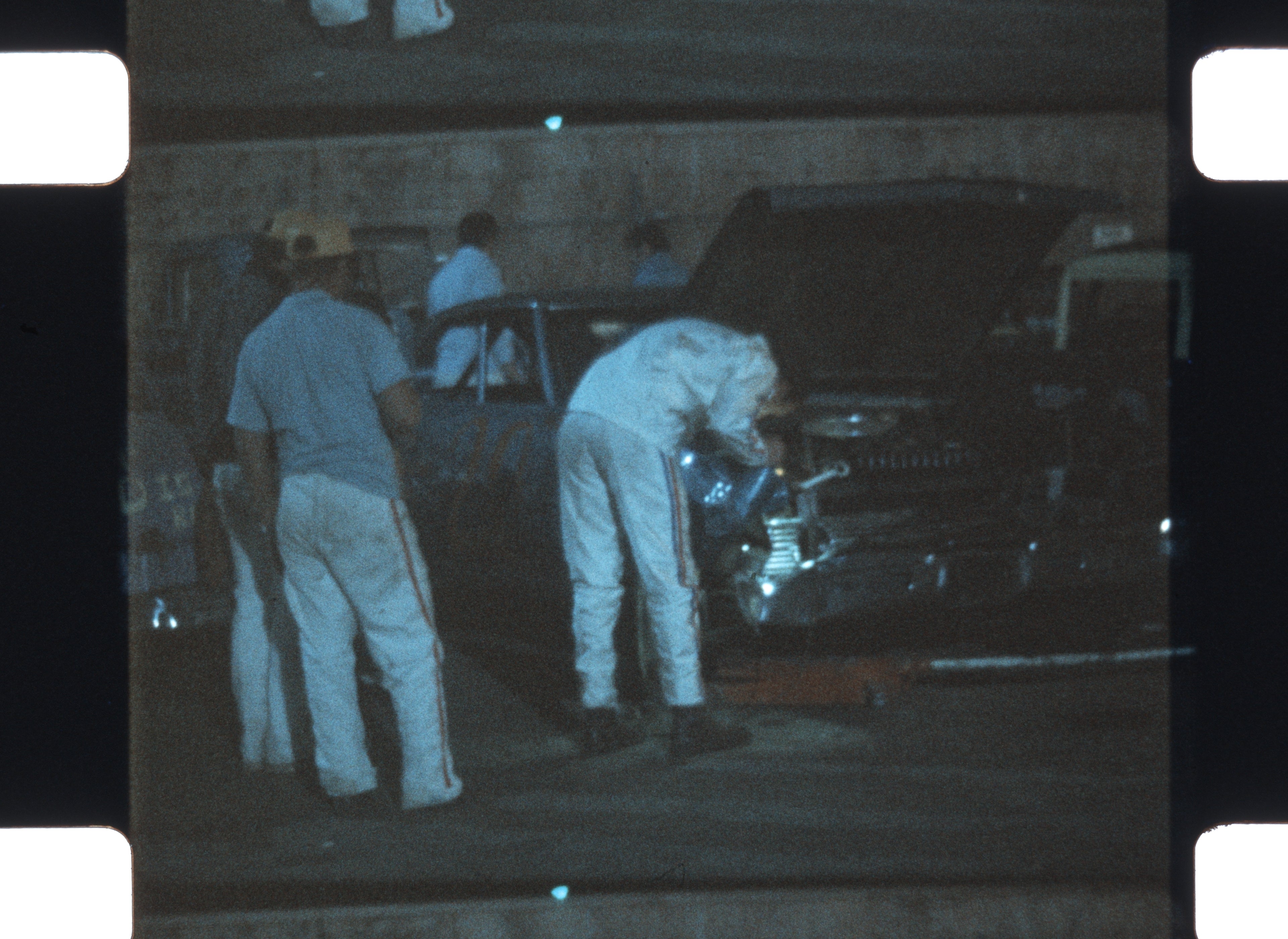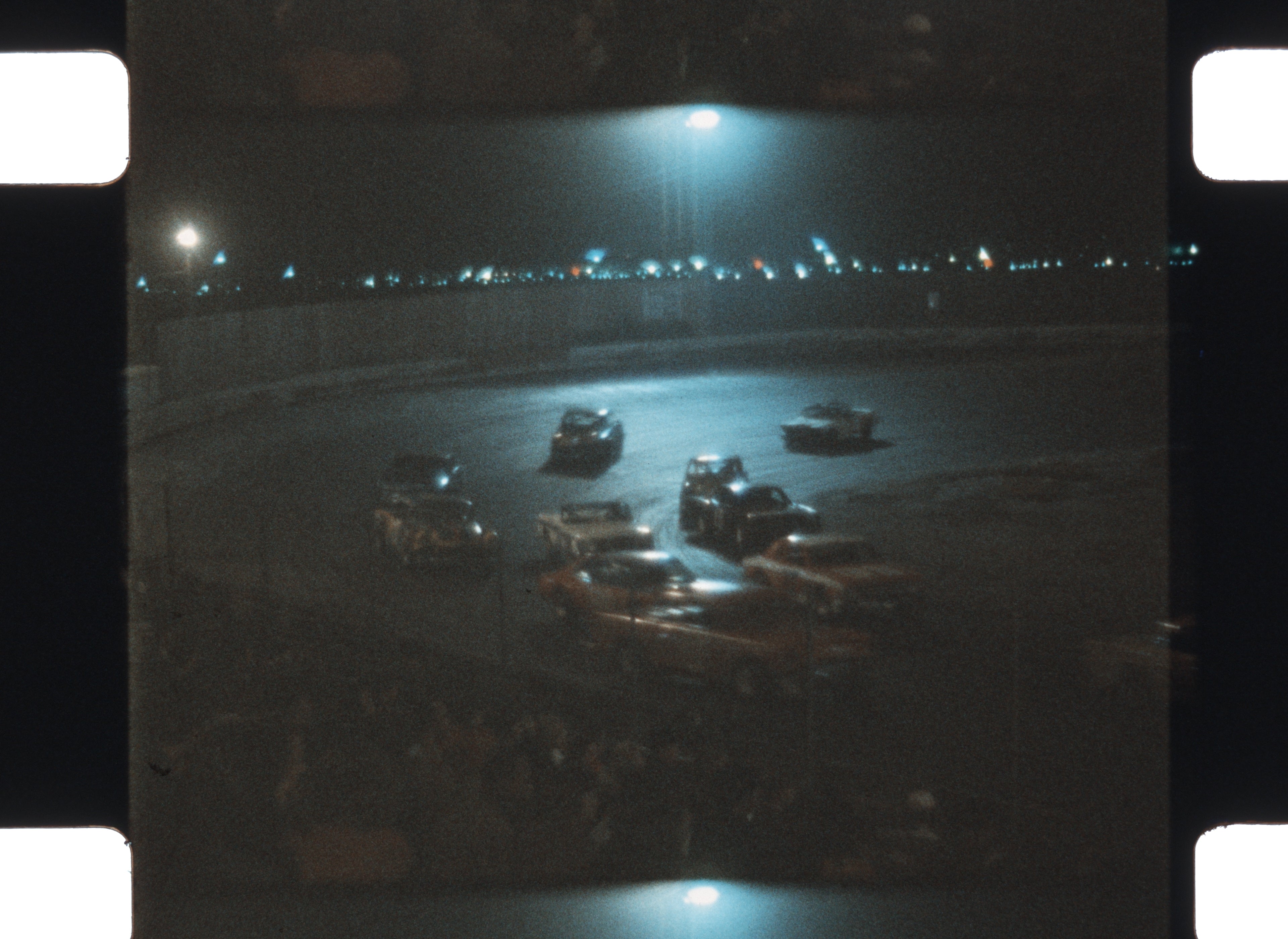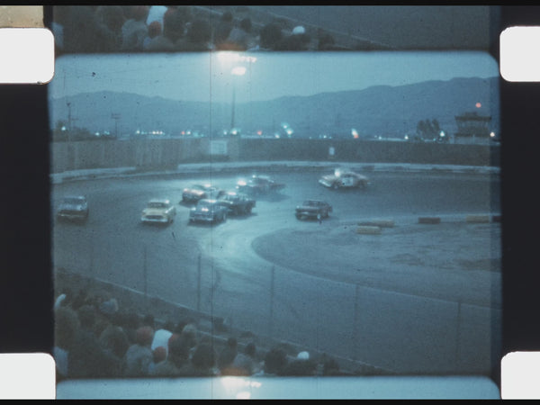 This home movie documents stock car racing in Southern California during the late 1960s, capturing the sights and atmosphere of grassroots American motorsports in the late evening and night. Shot on color film, the reel focuses on both competitive racing and the behind-the-scenes activity that defined local tracks of the era.