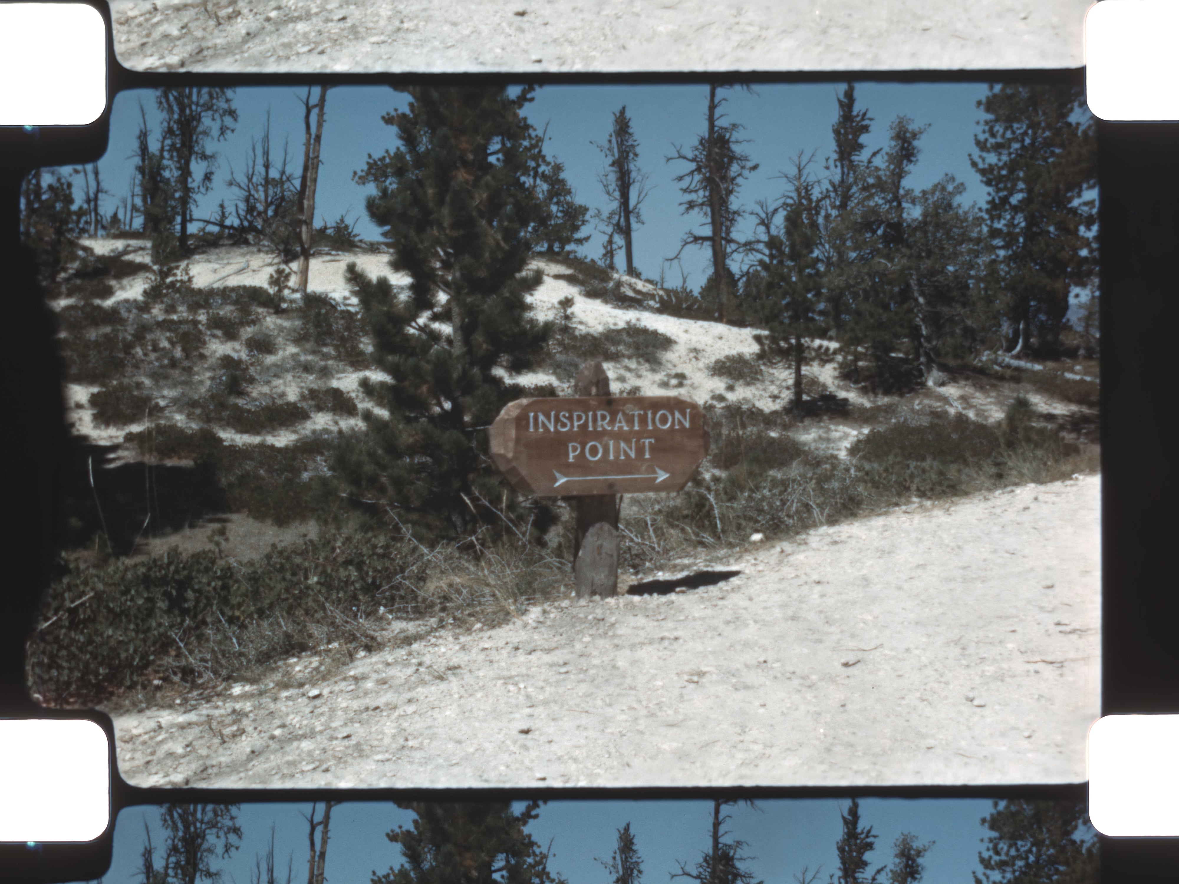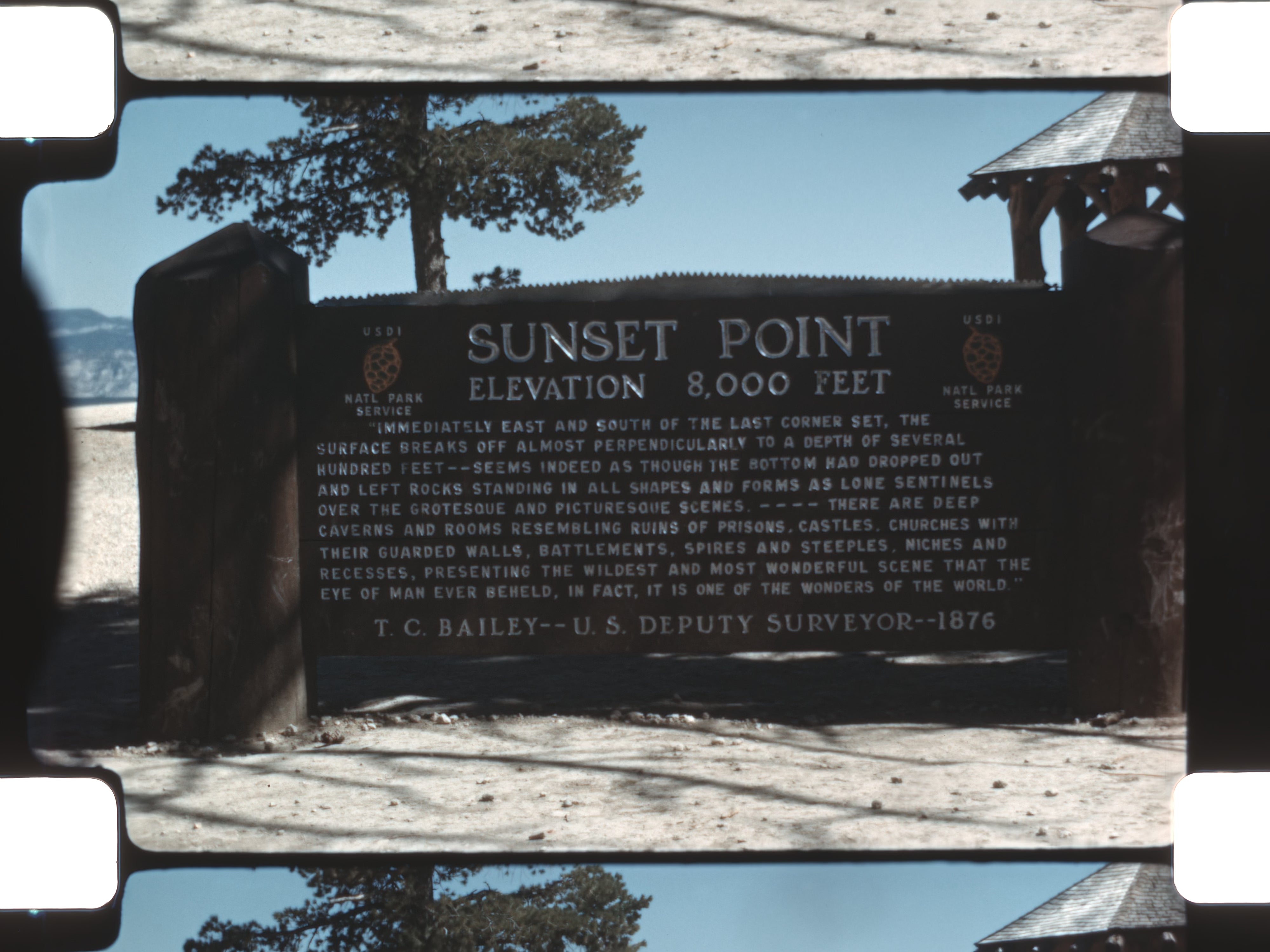 Road travel continues across major landmarks, including the Continental Divide and Wolf Creek Pass. The landscape shifts into canyons and sagebrush terrain before the camera lingers on dramatic overlooks such as Rainbow Point, Aqua Canyon, Natural Bridge, Bryce Point, Inspiration Point, Sunset Point, and Fairyland—each revealing layered rock formations, pine trees, and expansive views of the surrounding terrain.