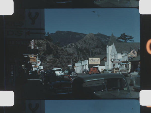 This home movie documents a family vacation through the American West and Rocky Mountain region, capturing mountain towns, alpine lakes, wildlife encounters, and scenic travel by road, rail, and water. Shot on color film, the reel reflects the spirit of midcentury tourism—marked by curiosity, mobility, and unhurried observation of the landscape.