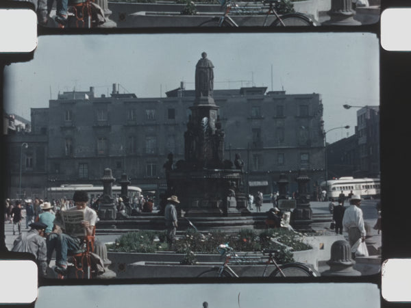 Mexico, Mexico City, Travel footage, Home movies, 16mm film, Color home movies, Silent film, Urban scenes, Statues, Monuments, Murals, Street life, Sombrero, Horse riding, Fountain, Stadium, Coastal travel, Beach, Ocean waves, Swimming, Pool, People on beach, Fishing trip, Saltwater fishing, Fishermen, City exploration, Midcentury travel, Americana abroad, Analog film, Nostalgic footage, Archival travel footage
