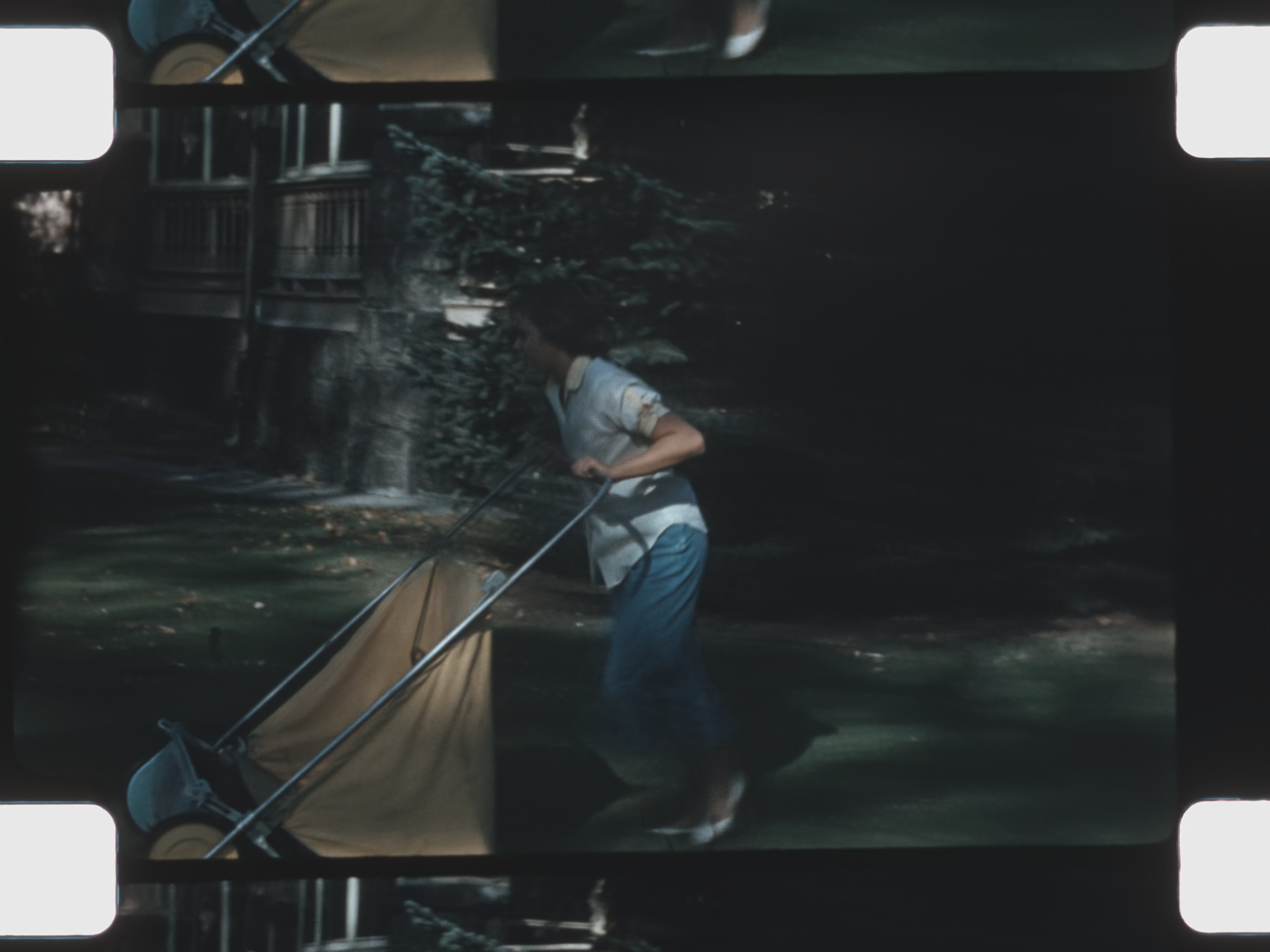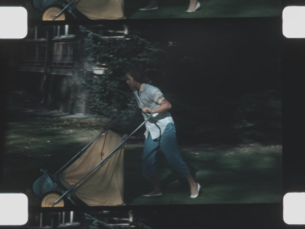 The film opens with men preparing to board a small aircraft, followed by aerial views of mountains filmed from inside the plane. The setting then shifts briefly to home life, where children walk around their house in pajamas and a family works together in the yard. A girl mows the lawn, and scenes of a backyard swimming pool ground the footage in familiar suburban routines.