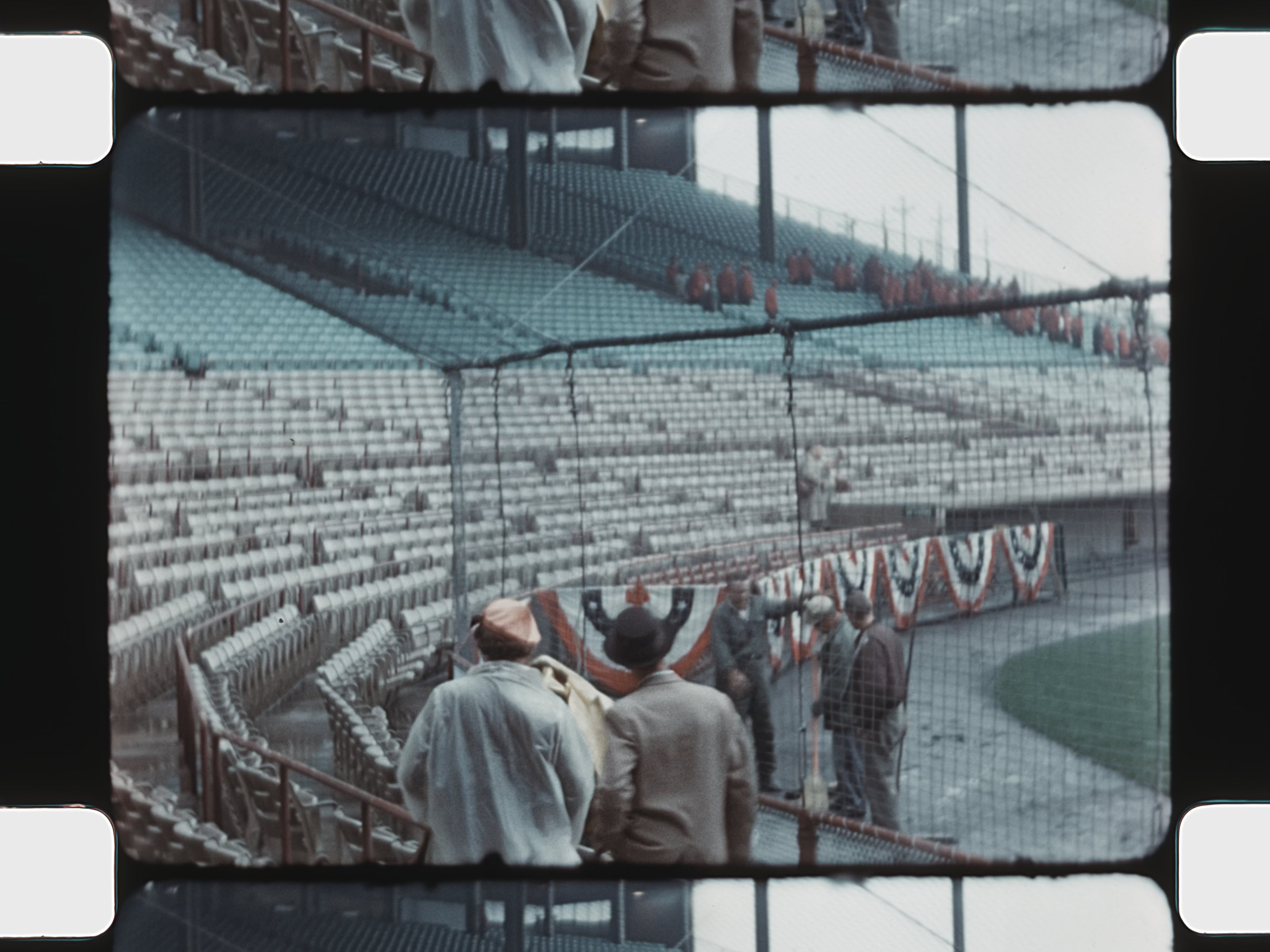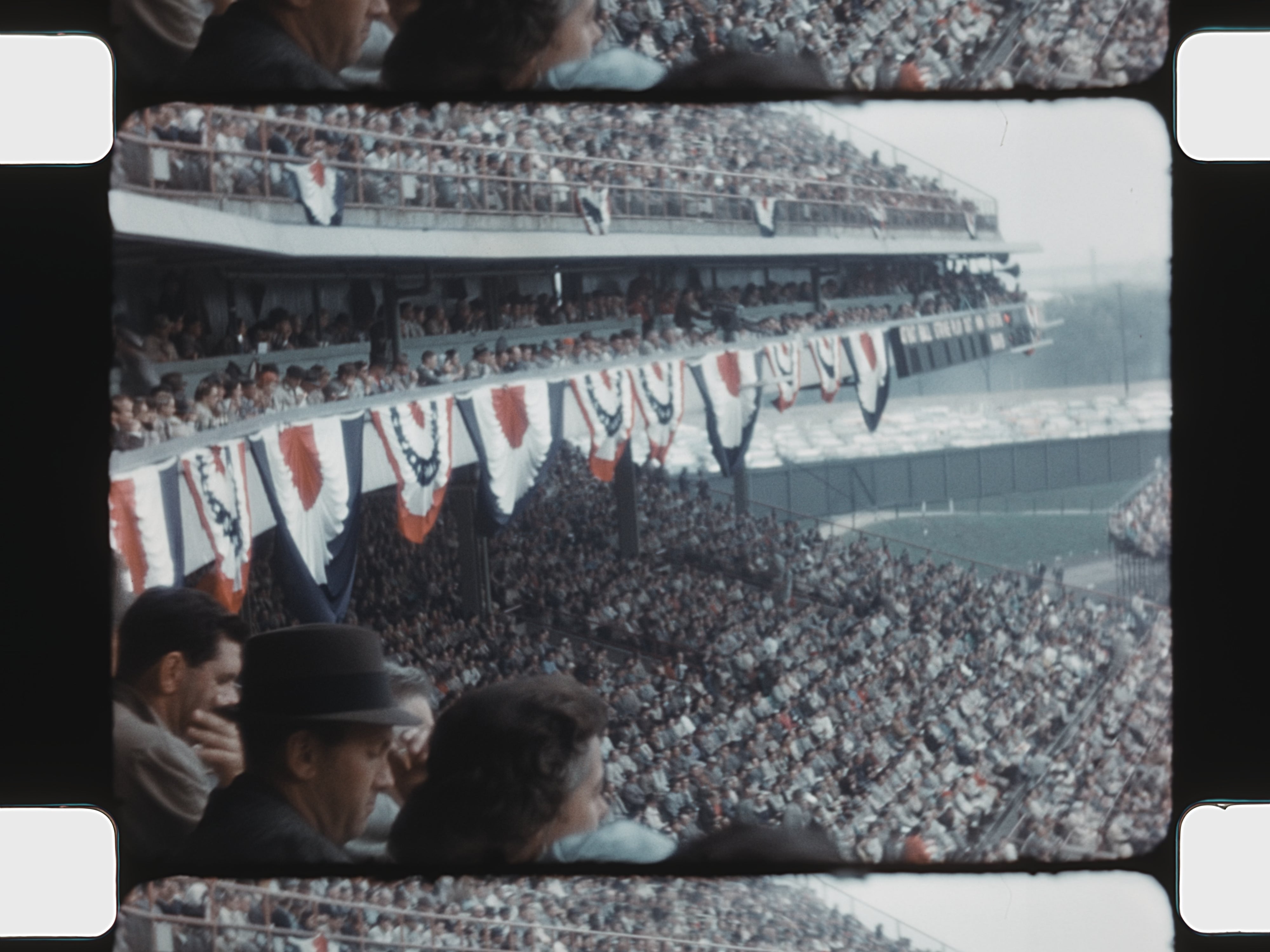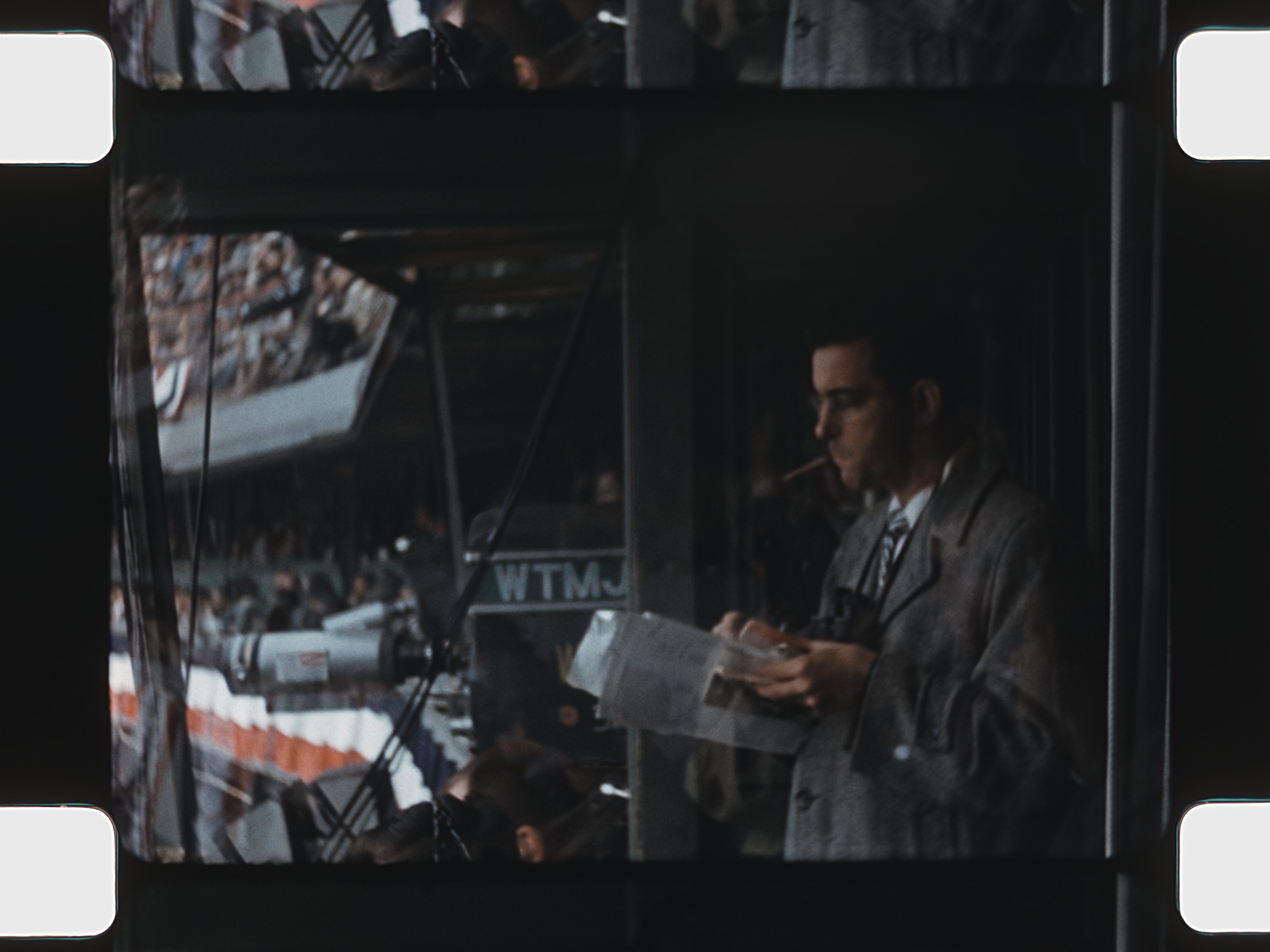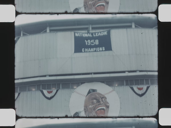 Preserved as true home movie footage—not a distributed compilation—this reel provides a valuable, ground-level record of the 1958 World Series atmosphere, combining player preparation, media presence, and fan engagement into a single, cohesive document of midcentury sports history.