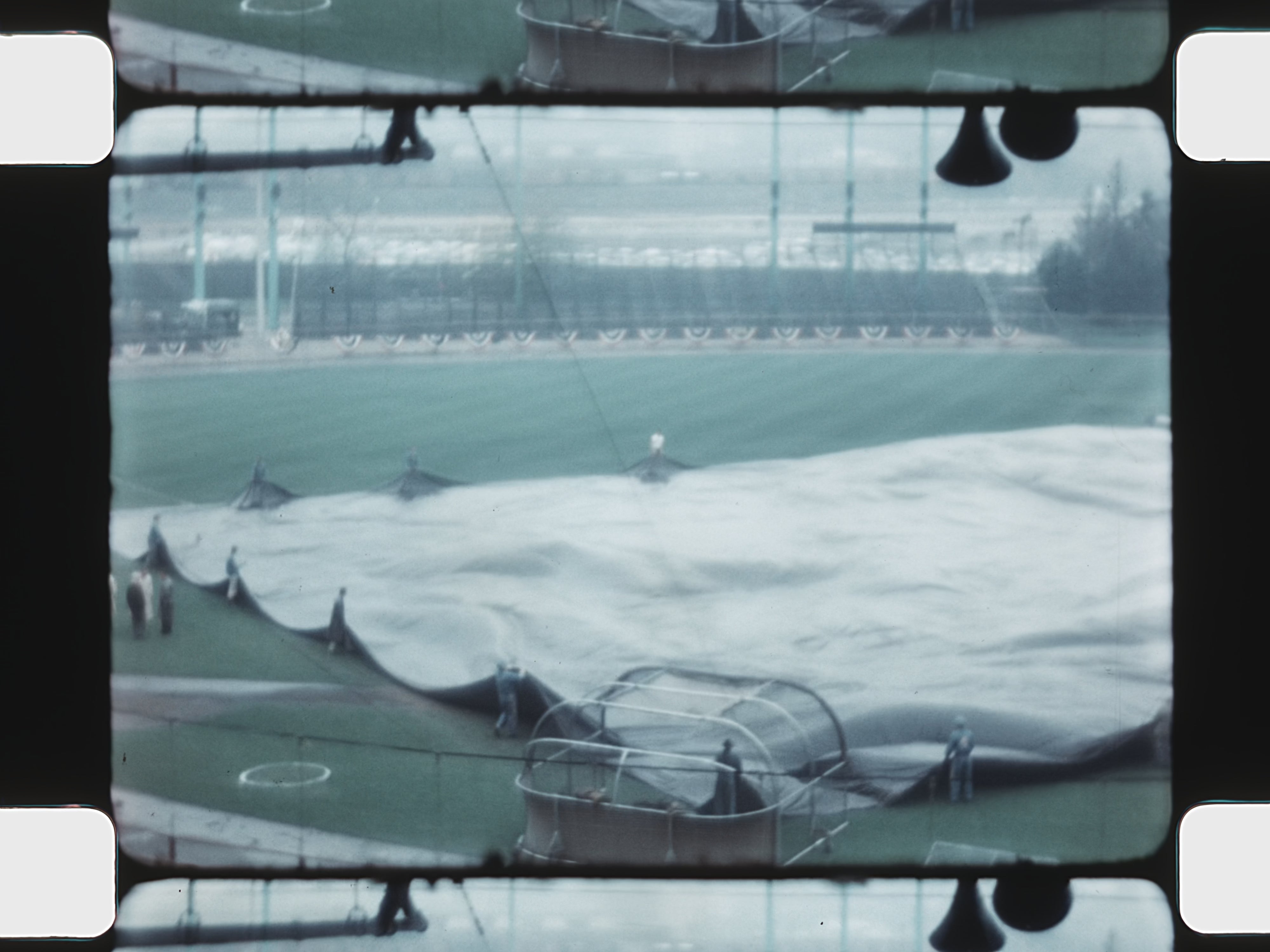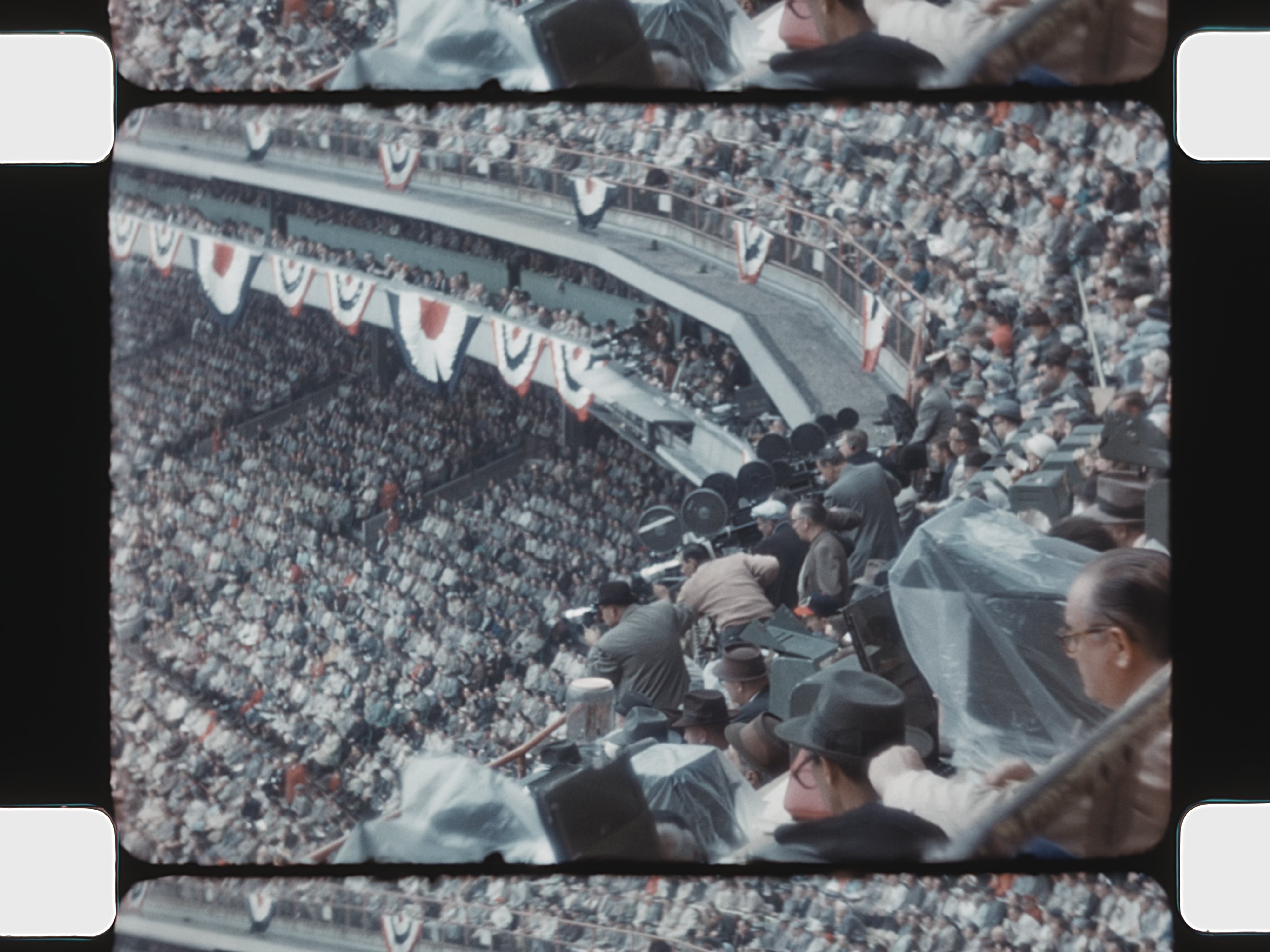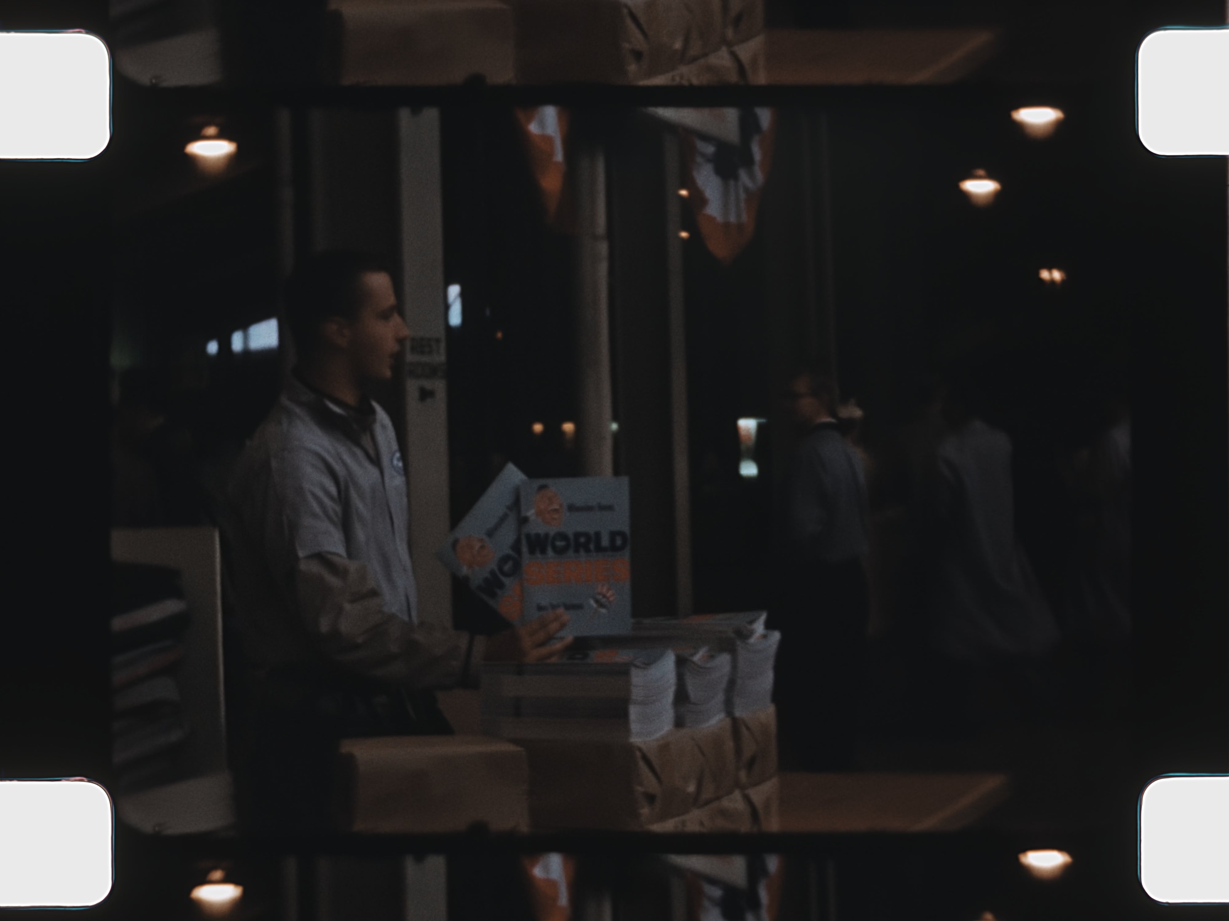 Preserved as true home movie footage—not a distributed compilation—this reel provides a valuable, ground-level record of the 1958 World Series atmosphere, combining player preparation, media presence, and fan engagement into a single, cohesive document of midcentury sports history.