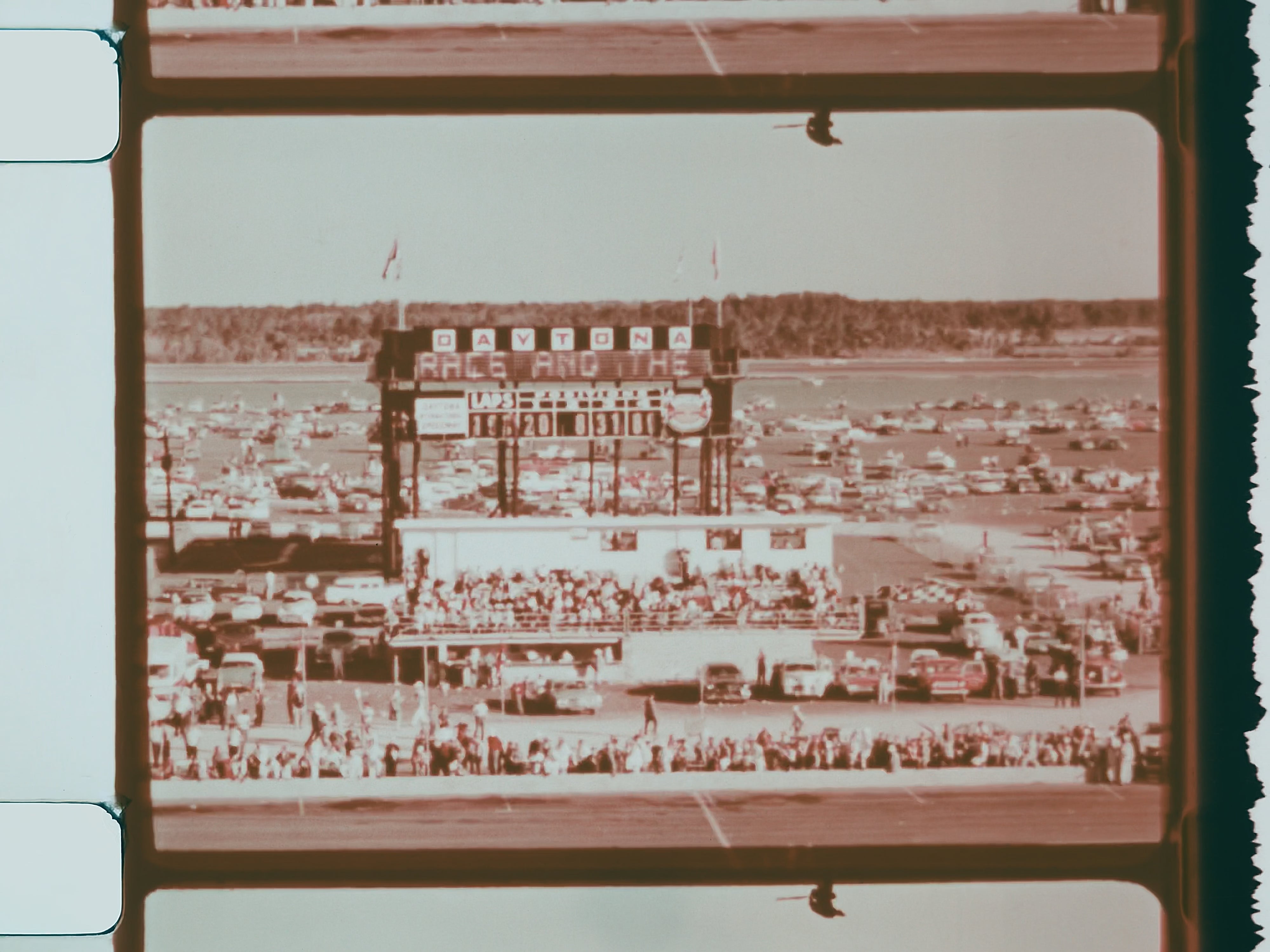 Racing USA, Motorsports, Stock car racing, NASCAR, Daytona 500, 1960s, American racing culture, Champion Spark Plugs, Sponsored film, Promotional film, Race cars, Speed, Grandstands, Racing fans, Race weekend, Pageants, Parades, Corporate sponsorship, Automotive culture, Midcentury America, Vintage motorsports footage, 16mm film, Color film, Sound film, Analog film, Archival footage, Americana