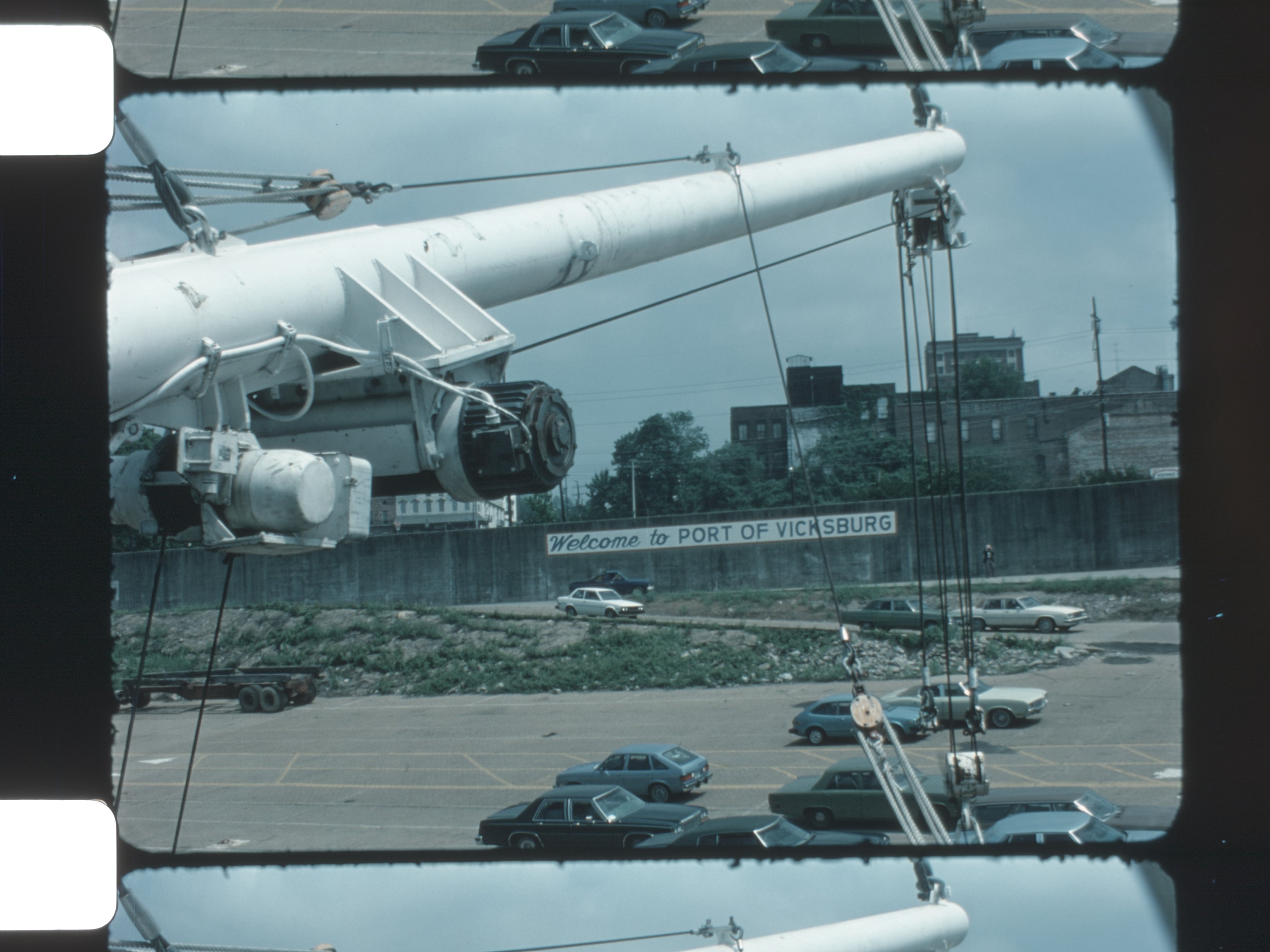 The reel then turns toward military heritage with scenes from the Vicksburg National Military Park, documenting monuments and preserved landscapes tied to the Civil War campaigns along the river. Additional footage shows the working waterfront at the Port of Vicksburg, where commercial river traffic underscores the continued importance of the Mississippi as a transportation corridor.