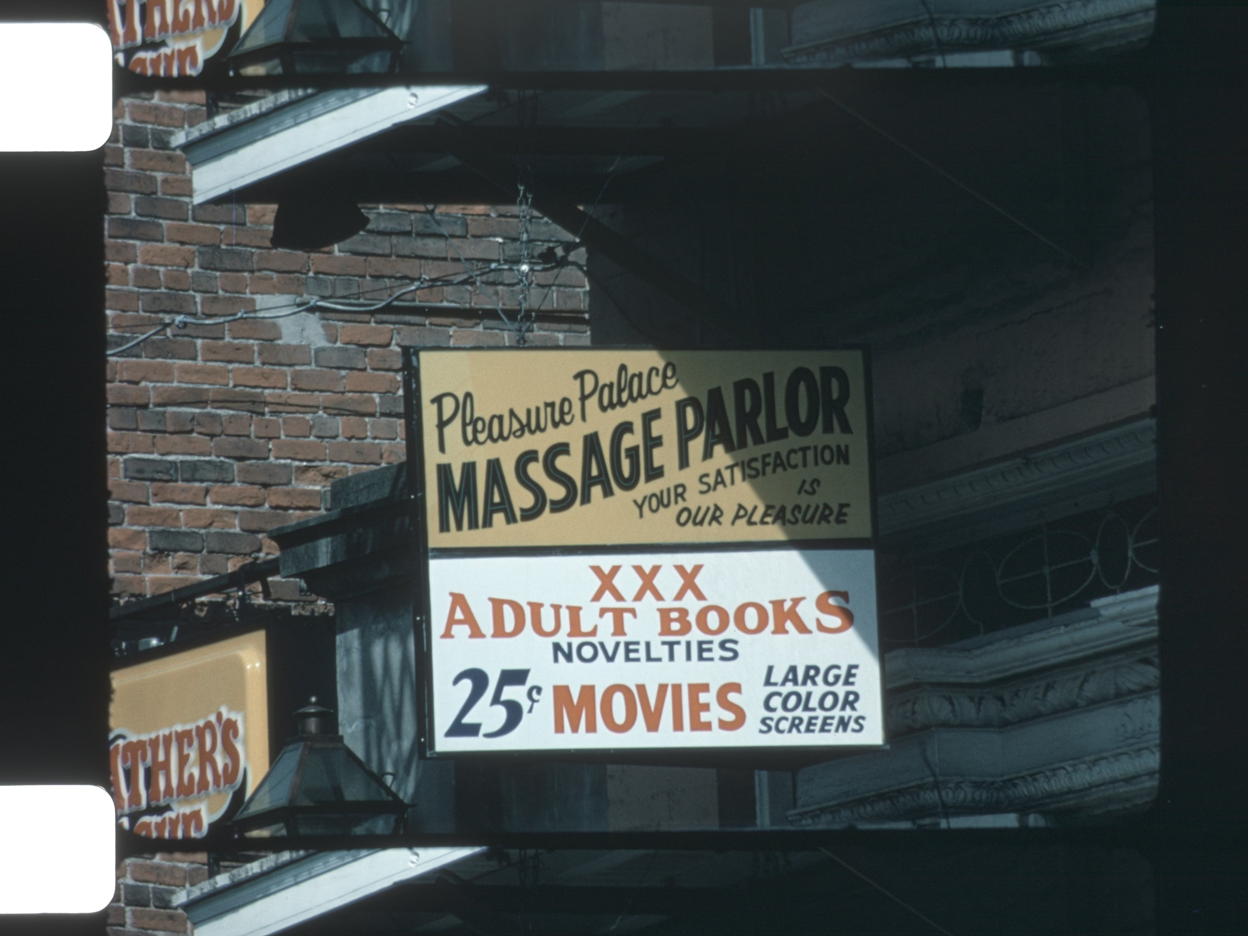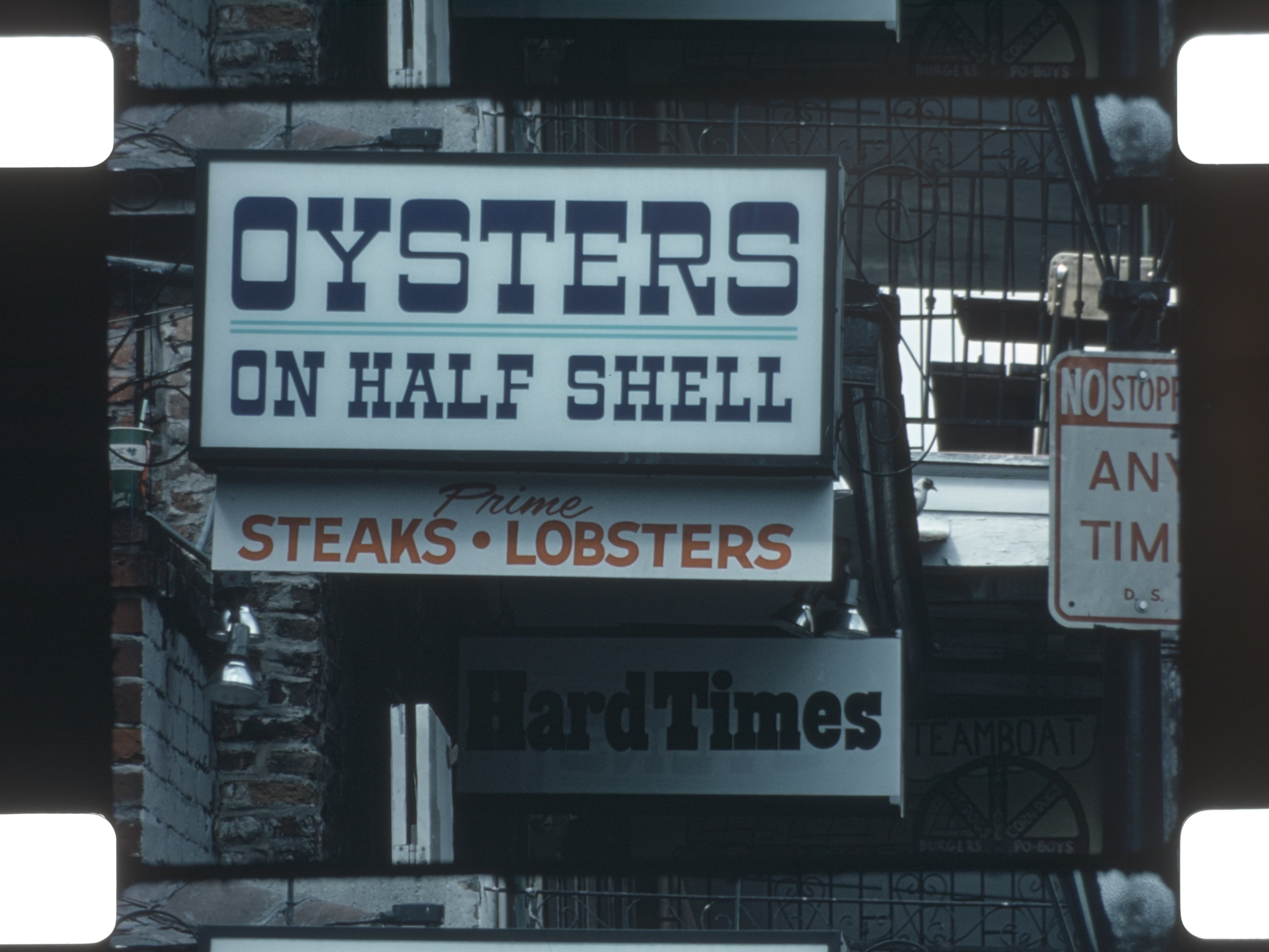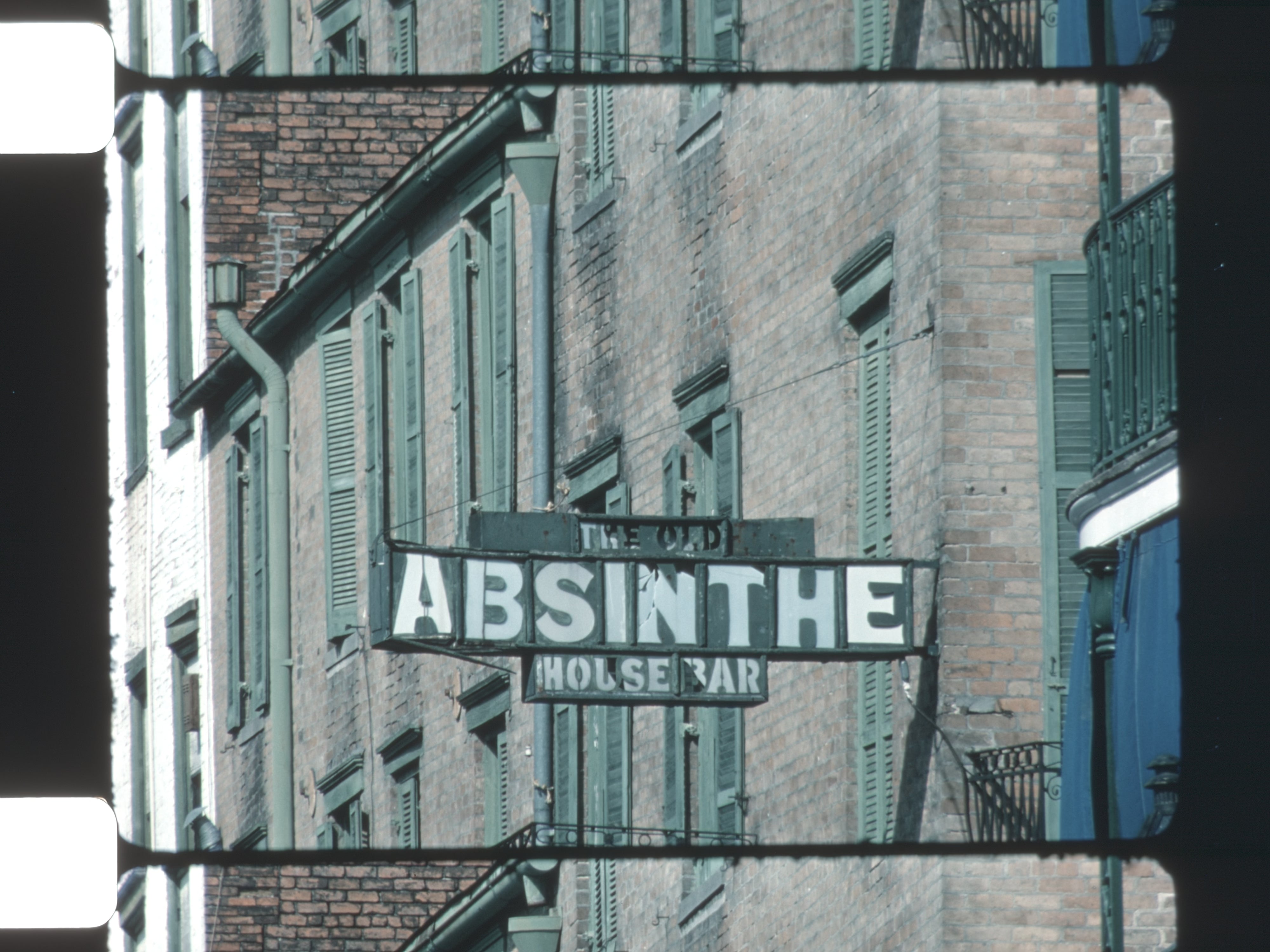 Street scenes from New Orleans follow, capturing busy city streets filled with cars, pedestrians, and horse-drawn carriages moving through historic neighborhoods. The sights and sounds of the city come alive through choirs singing, street vendors calling out, and performers entertaining passersby. The camera lingers along Bourbon Street, documenting storefronts, nightlife, and the more risqué businesses that contributed to the street’s reputation. A visit to the Absinthe House Bar anchors the sequence in one of the city’s best-known establishments.