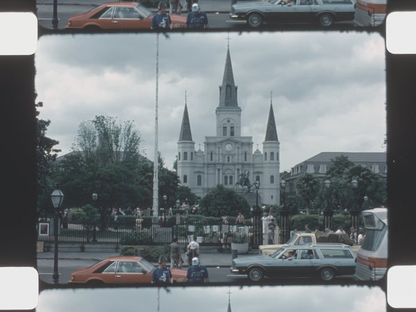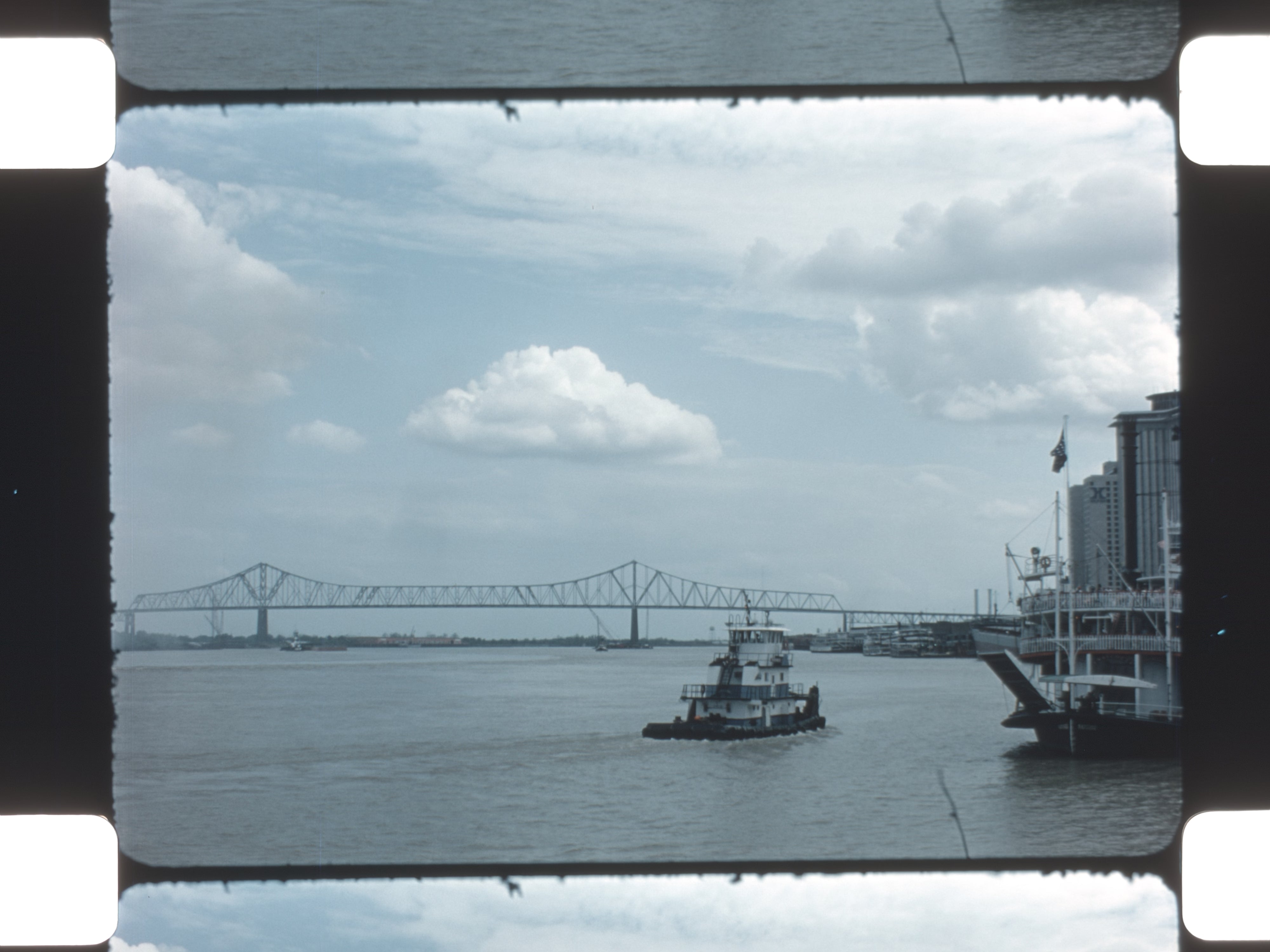 Shot on color Kodachrome film, the footage captures a classic midcentury tourism experience—where riverboats, historic architecture, and Southern city life intersect.