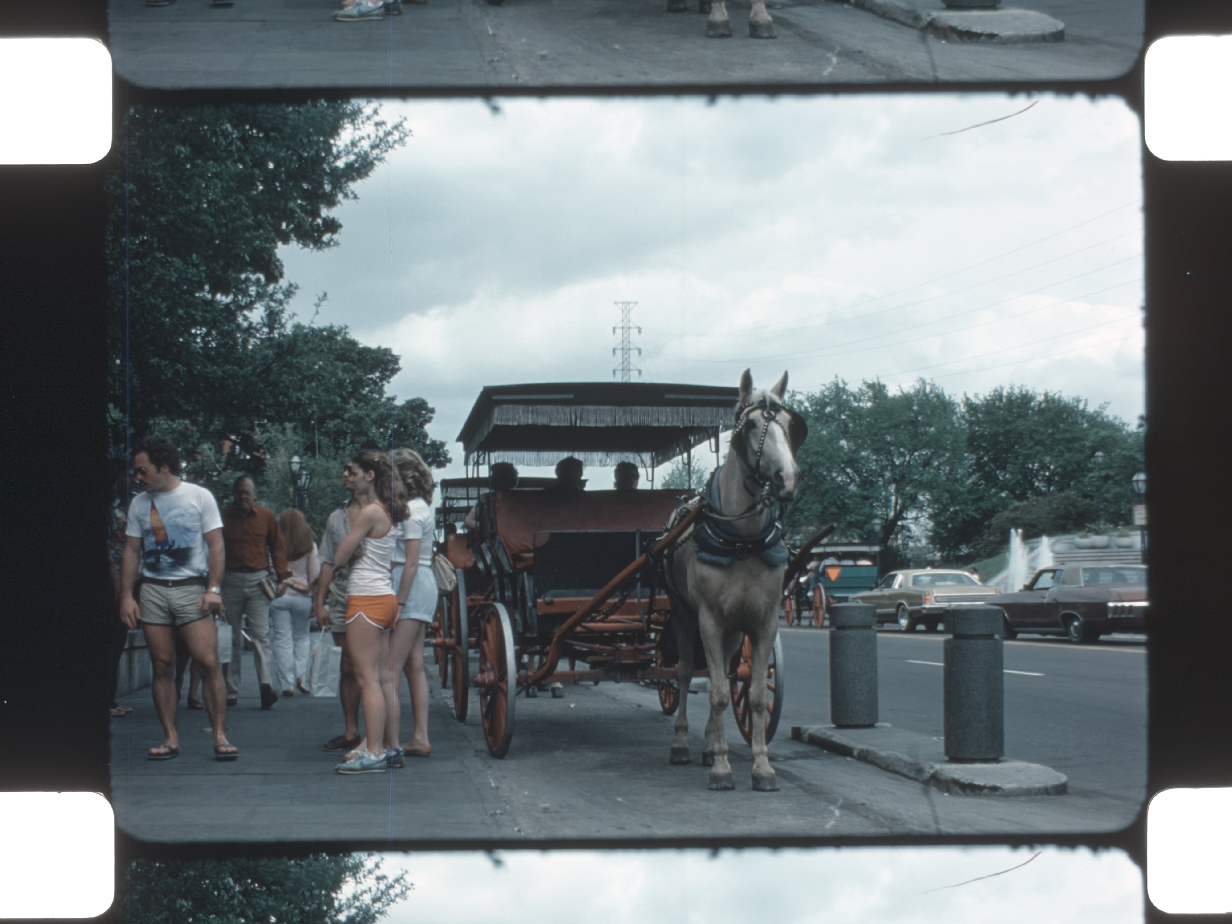 Mississippi River, Mississippi Queen, Steamboat travel, River cruise, New Orleans, Vicksburg, Louisiana, Mississippi, Atlanta Georgia, Bourbon Street, Absinthe House, Baton Rouge, St. Francisville, Rosedown Plantation, Shadows on the Teche, National Trust for Historic Preservation, Plantations, Southern travel, Midcentury tourism, Street performers, Horse-drawn carriage, Historic architecture, Americana, 16mm film, Color home movies, Analog film, Nostalgic footage
