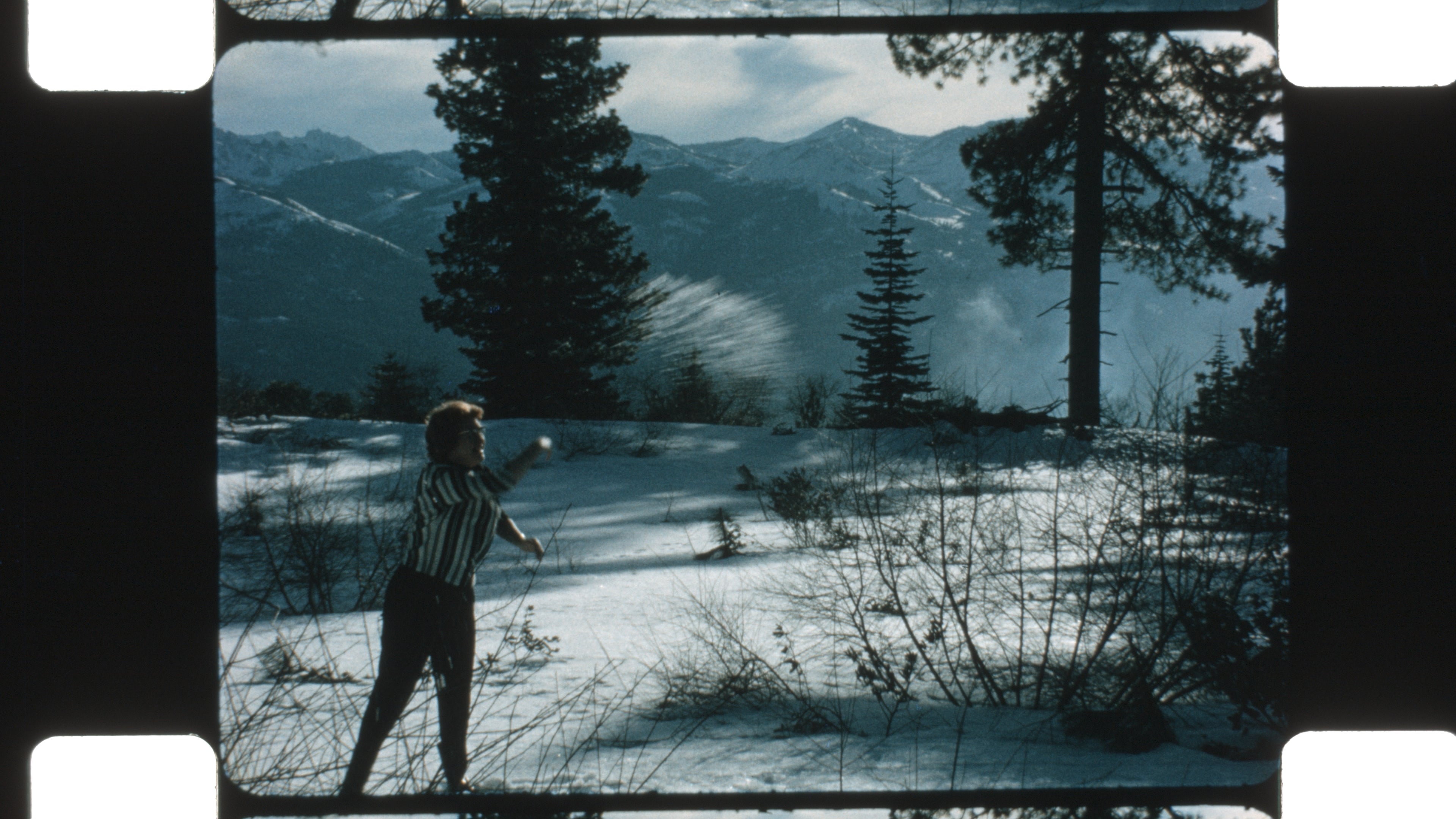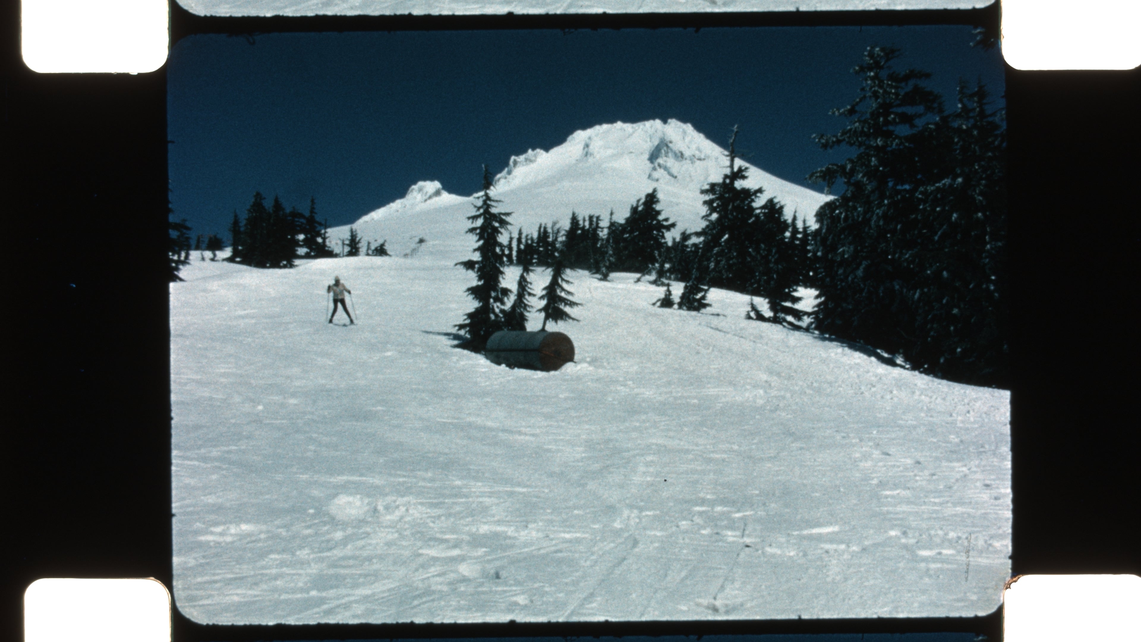This reel documents winter camping, family recreation, and travel across the Cascade Mountain Range, blending playful domestic moments with dramatic volcanic landscapes. Shot on color 16mm film without synchronized sound, the footage captures both the intimacy of family life and the scale of the Pacific Northwest’s mountain environment.