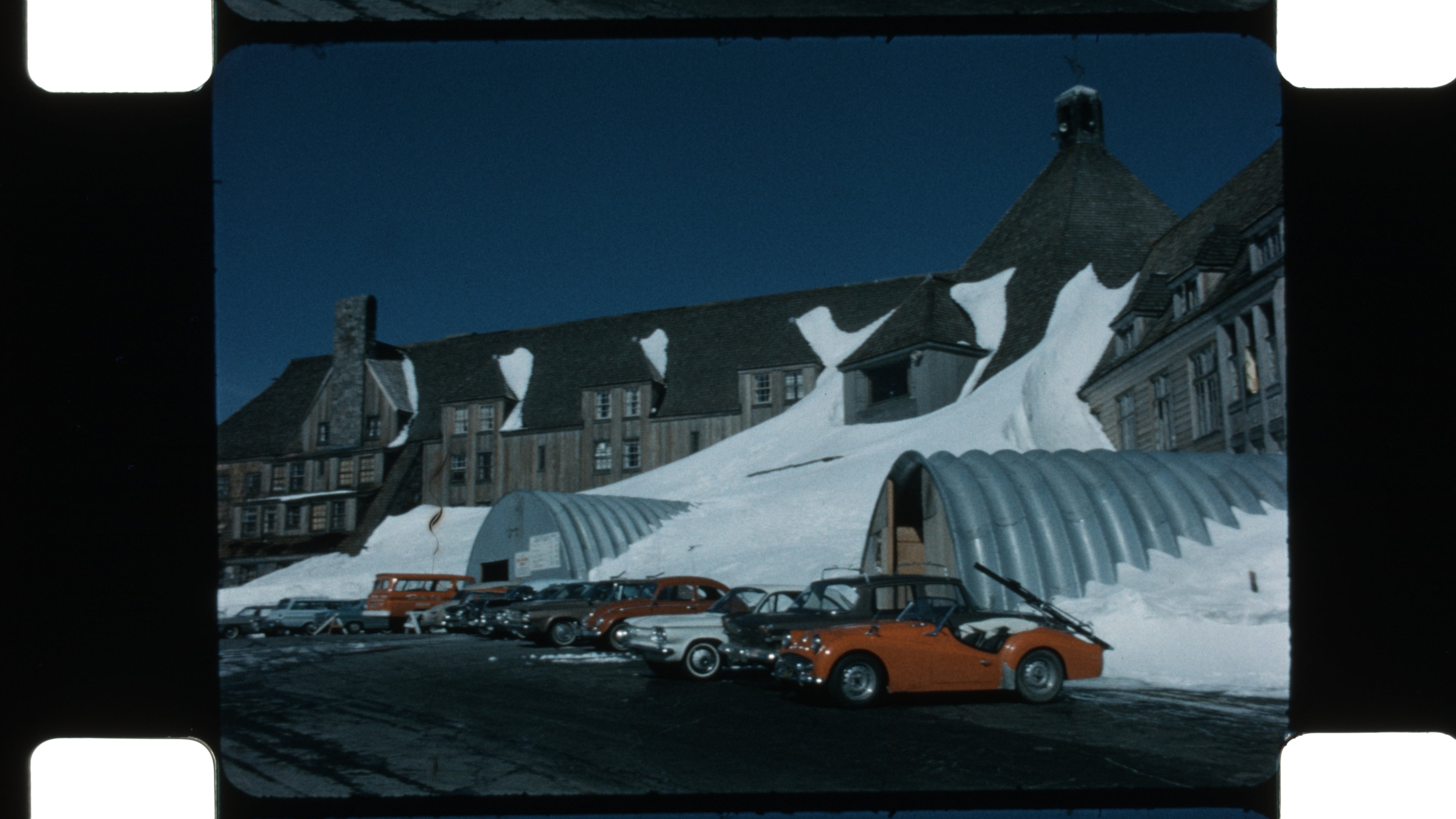 Carl Damaske Family, Cascade Mountains, Pacific Northwest, 16mm film, Color home movies, Silent film, Winter camping, Snowball fight, Camp stove cooking, Station wagon camping, Oldsmobile, Snow travel, Mount Lassen, Mount Shasta, Crater Lake Oregon, Mount Scott, Mount Thielsen, Mount Hood, Skiing, Ski lifts, Mount Hood resort, Hot springs, Swimming in snow, Snowmelt, Creeks, Waterfall, Volcanic landscape, Midcentury travel, Outdoor recreation, Americana, Analog film, Nostalgic footage, Archival home movie