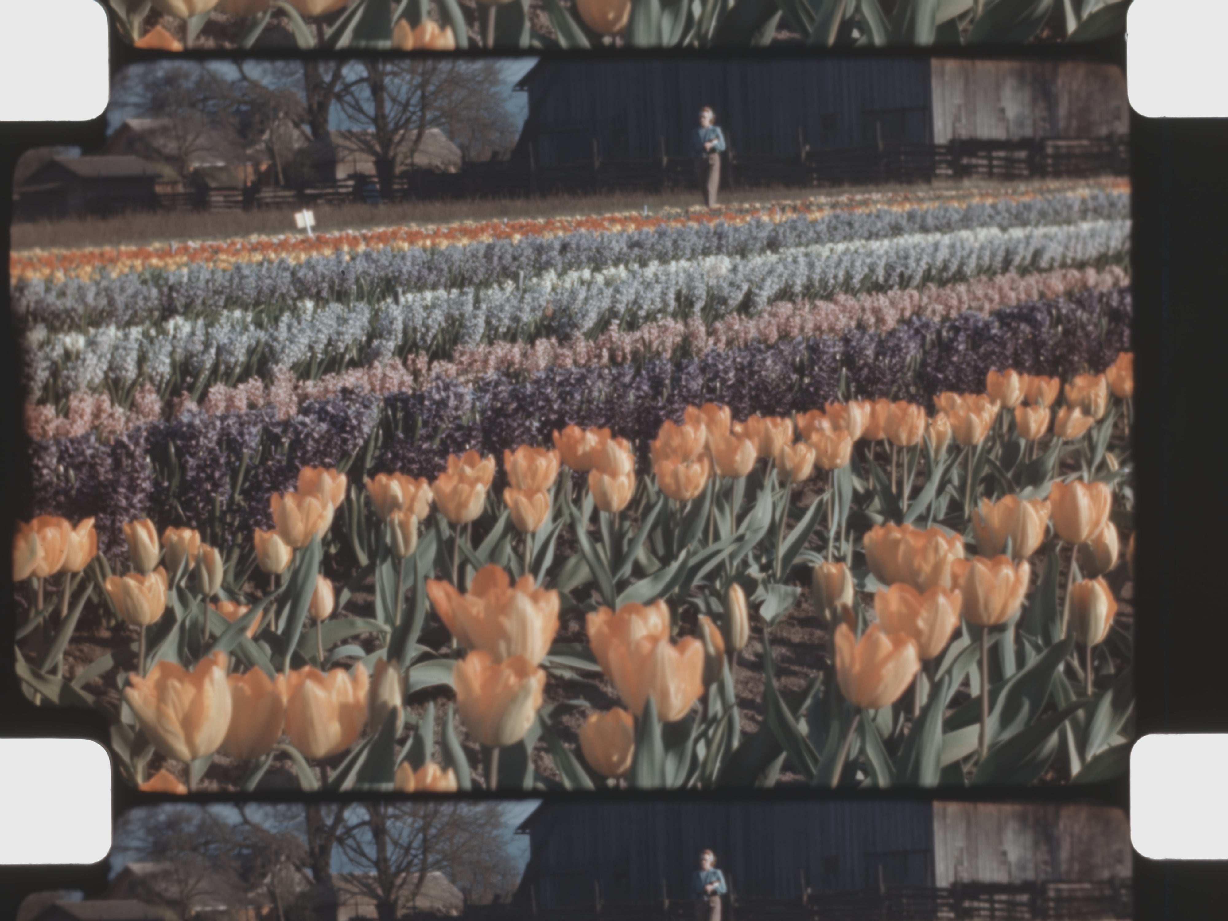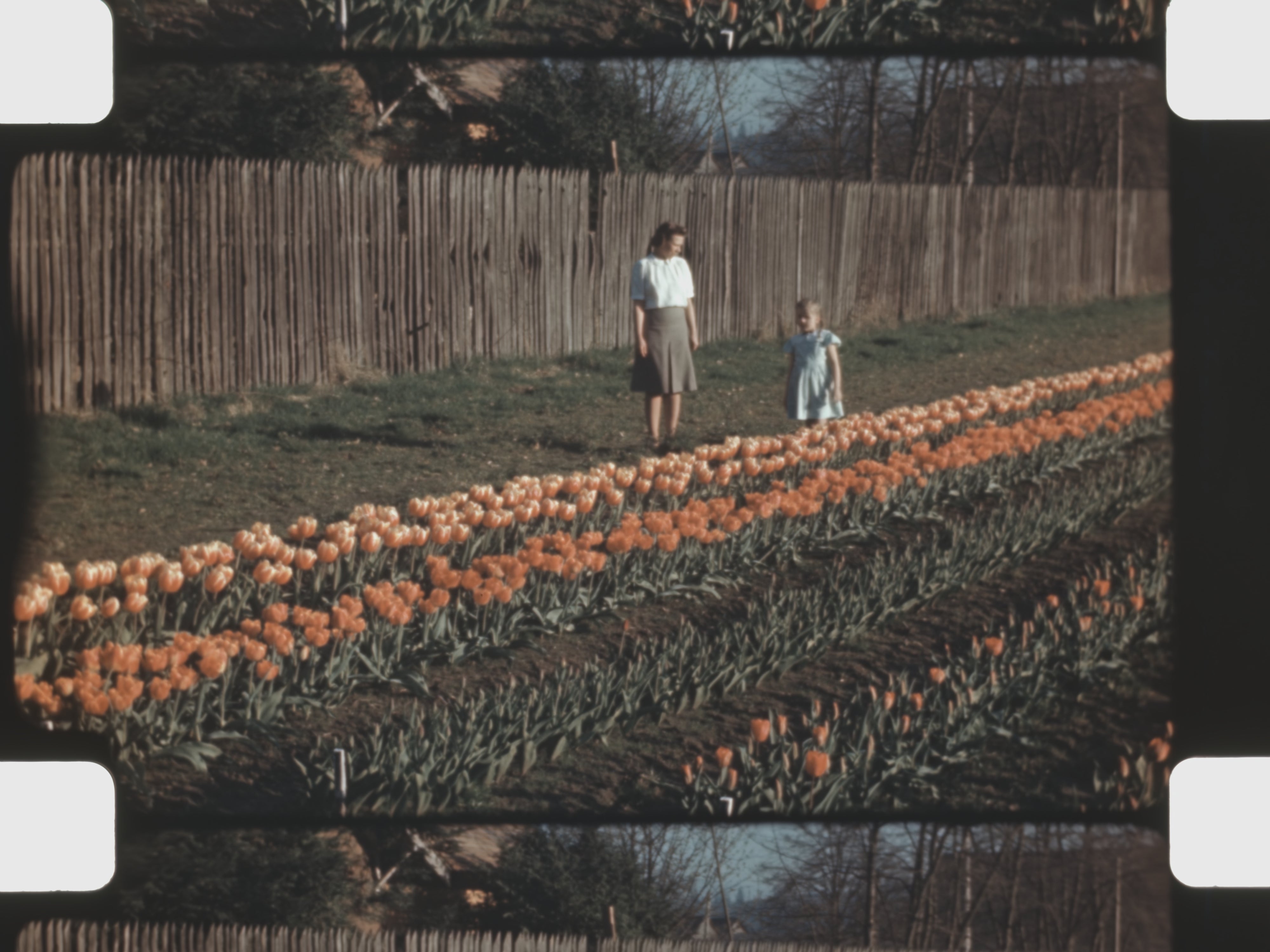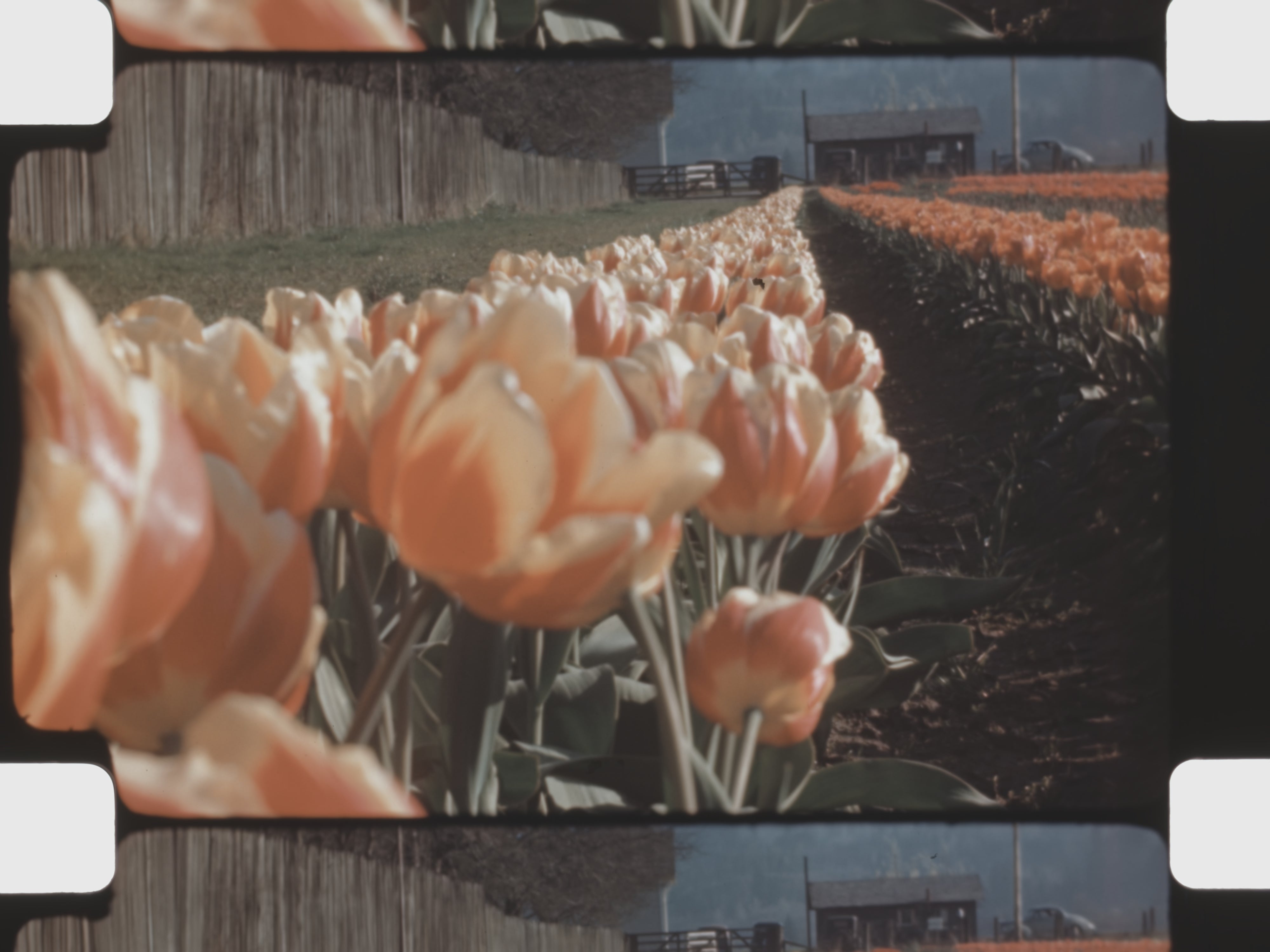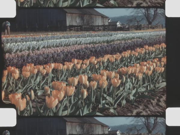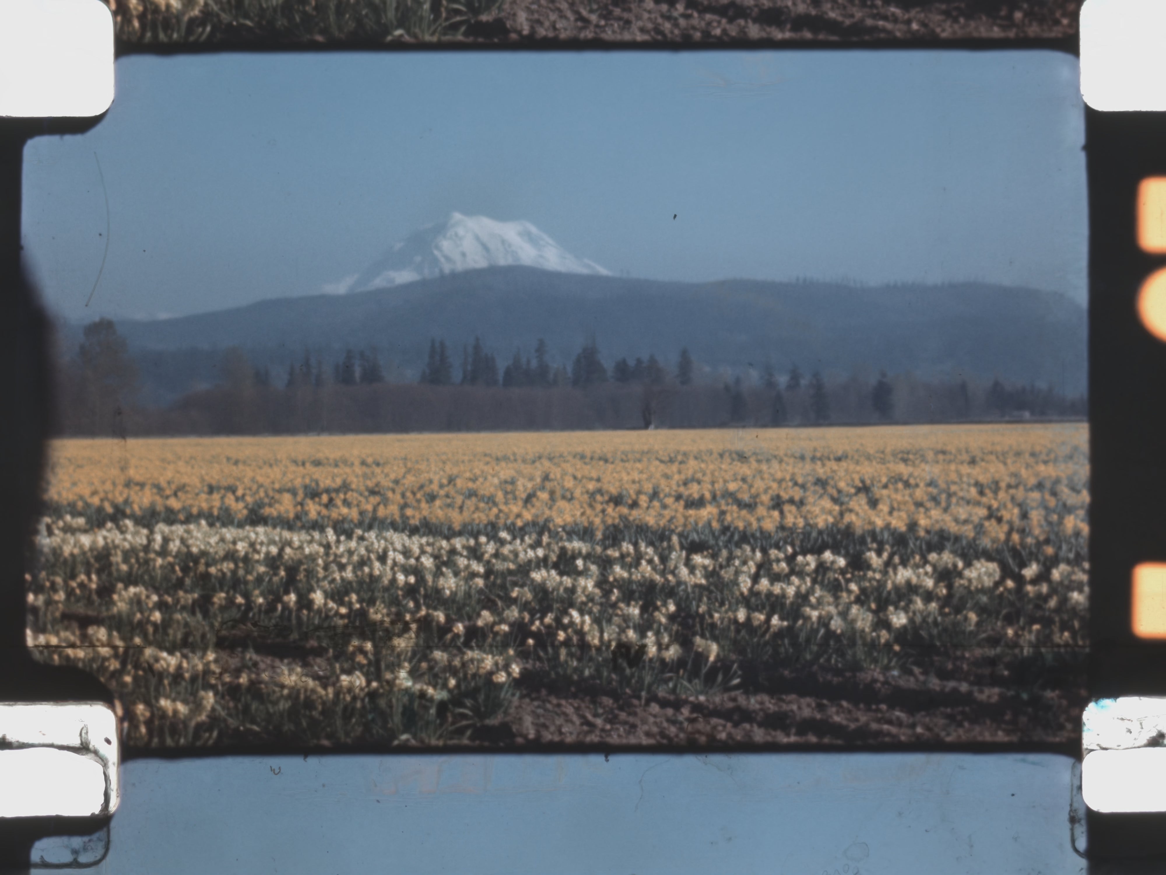 Tacoma Washington, Washington State, Pacific Northwest, 16mm film, Color home movies, Spring flowers, Tulips, Hyacinths, Daffodils, Flower fields, Mount Baker, Tacoma Narrows, Sailboats, Family life, Shoreline, Beach recreation, Abandoned building, Home butchering, Grinding beef, Food preparation, Backyard work, Working on car, Winter scenes, Snow, Sledding, Kids playing in snow, Snow-covered houses, Seasonal change, Midcentury lifestyle, Americana, Analog film, Nostalgic footage