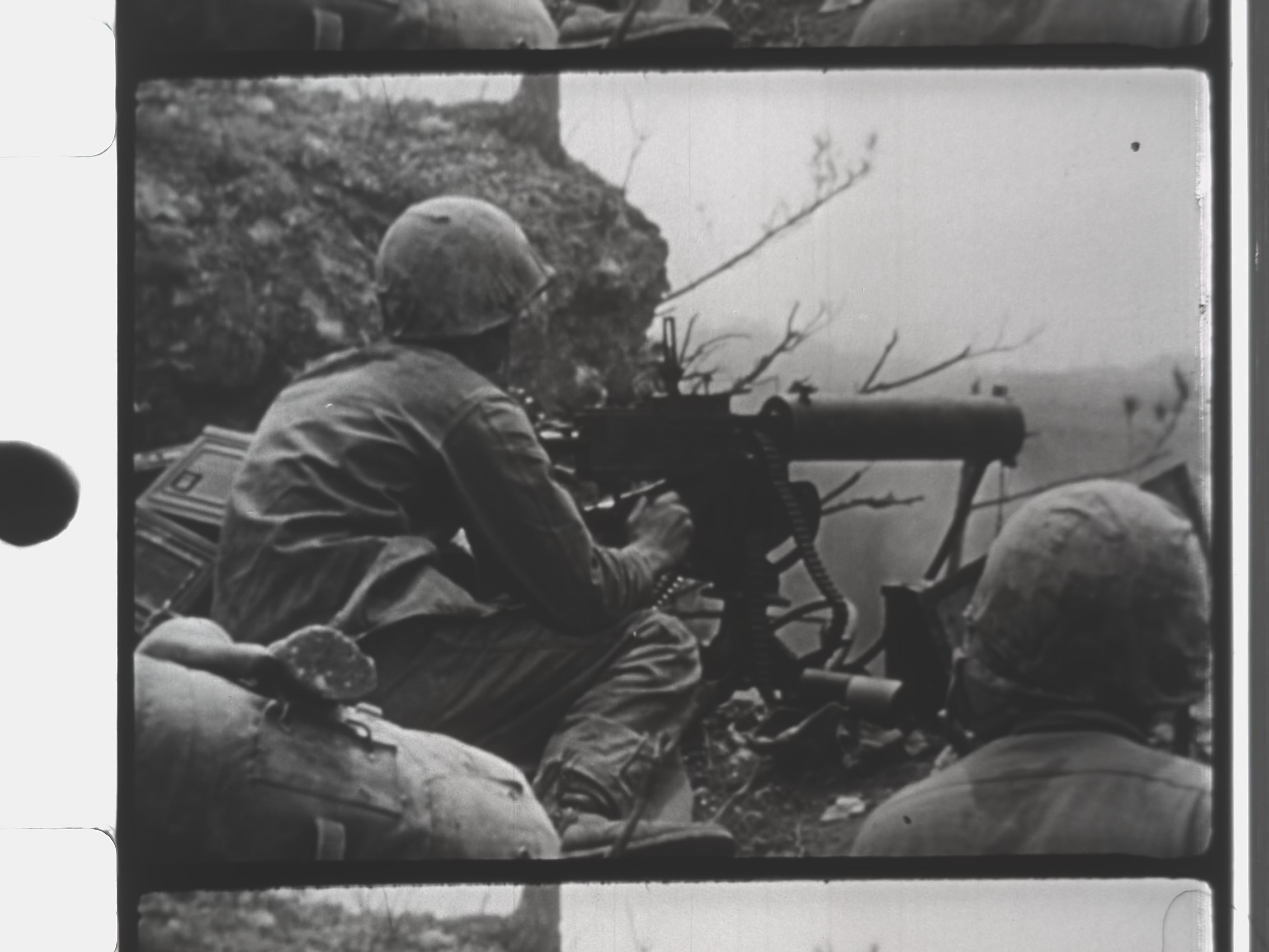 The core of the film focuses on U.S. Marine Corps activity on Okinawa, documenting patrols, secured positions, and post-battle conditions on the island. Rather than depicting frontline combat alone, the footage emphasizes occupation duties, perimeter defense, and the ongoing effort to maintain order and security in a contested environment. These scenes reflect the Marine Corps’ role in stabilizing territory amid lingering resistance and the aftermath of intense fighting.